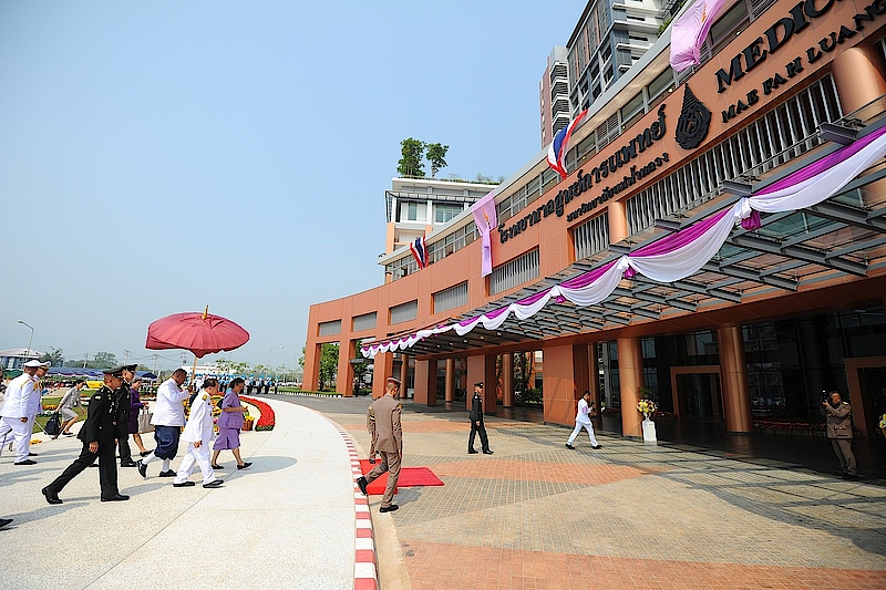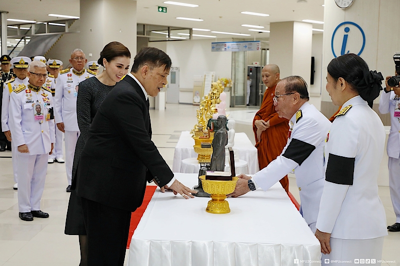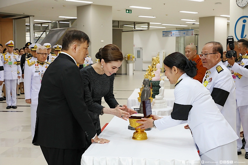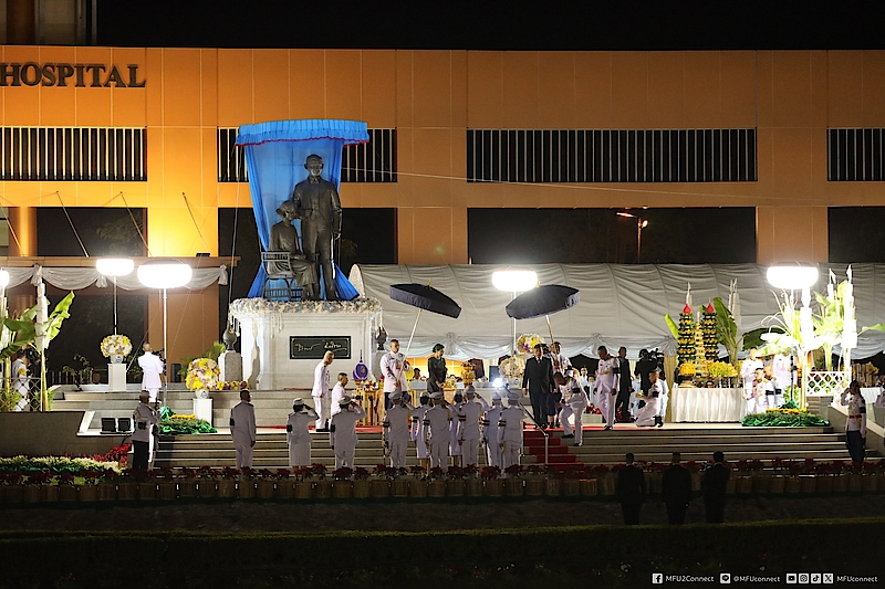 มหาวิทยาลัยแม่ฟ้าหลวง จัดพิธีอัญเชิญพระรูปสมเด็จพระมหิตลาธิเบศร อดุลยเดชวิกรม พระบรมราชชนก ประทับคู่ สมเด็จพระศรีนครินทราบรมราชชนนี ขึ้นประดิษฐานบนแท่นฐานอย่างเป็นทางการ ณ โรงพยาบาลศูนย์การแพทย์มหาวิทยาลัยแม่ฟ้าหลวง เมื่อวันศุกร์ที่ ๘ สิงหาคม ๒๕๖๘ เวลา ๐๗.๐๐ น. เพื่อเป็นสิริมงคลและแสดงความสำนึกในพระมหากรุณาธิคุณแห่งพระบรมราชชนก และสมเด็จพระบรมราชชนนี ผู้ทรงเป็นต้นแบบของบุคลากรทางการแพทย์ของชาติ โดยมีพระราชวชิรคณี (ประเสริฐ ปญฺญาวชิโร, ดร.) เจ้าคณะจังหวัดเชียงราย เจ้าอาวาสวัดพระธาตุผาเงา เป็นประธานฝ่ายสงฆ์ ศาสตราจารย์พิเศษ ดร.วันชัย ศิริชนะ นายกสภามหาวิทยาลัยและอธิการบดีผู้ก่อตั้ง เป็นประธานในพิธี พร้อมด้วยผู้ช่วยศาสตราจารย์ ดร.มัชฌิมา นราดิศร อธิการบดี คณะผู้บริหาร คณาจารย์ พนักงาน และนักศึกษาเข้าร่วม