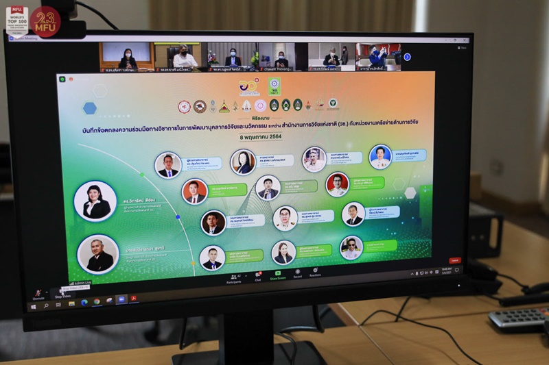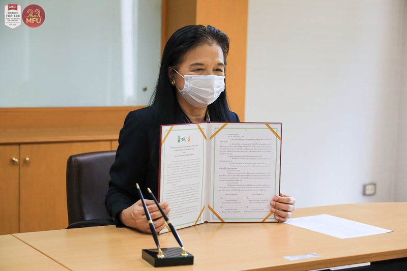 เมื่อเร็วๆ นี้ ศ.ดร.สุจิตรา วงศ์เกษมจิตต์ รองอธิการบดีมหาวิทยาลัยแม่ฟ้าหลวง (มฟล.) ได้ลงนามในบันทึกข้อตกลงความร่วมมือวิชาการ หรือ MOU ในการพัฒนาบุคลากรวิจัยและนวัตกรรม ร่วมกับสำนักงานการวิจัยแห่งชาติ (วช.) โดย ดร.วิภารัตน์ ดีอ่อง ผู้อำนวยการสำนักวงานการวิจัยแห่งชาติ สำนักงานการวิจัยแห่งชาติ (วช.) ในพิธีลงนามผ่านการประชุมทางไกลผ่านจอภาพ (Video Conferrence) พร้อมกับหน่วยงานเครือข่ายด้านการวิจัย รวม 13 หน่วยงาน เช่น มหาวิทยาลัยเทคโนโลยีราชมงคลอีสาน มหาวิทยาลัยทักษิณ มหาวิทยาลัยนครพนม มหาวิทยาลัยนเรศวร มหาวิทยาลัยมหาจุฬาลงกรณ์ราชวิทยาลัย เป็นต้น เมื่อวันที่ 8 พฤษภาคม 2564 ที่ห้องริมกก สำนักงานอธิการบดี มหาวิทยาลัยแม่ฟ้าหลวง จังหวัดเชียงราย