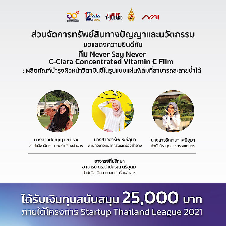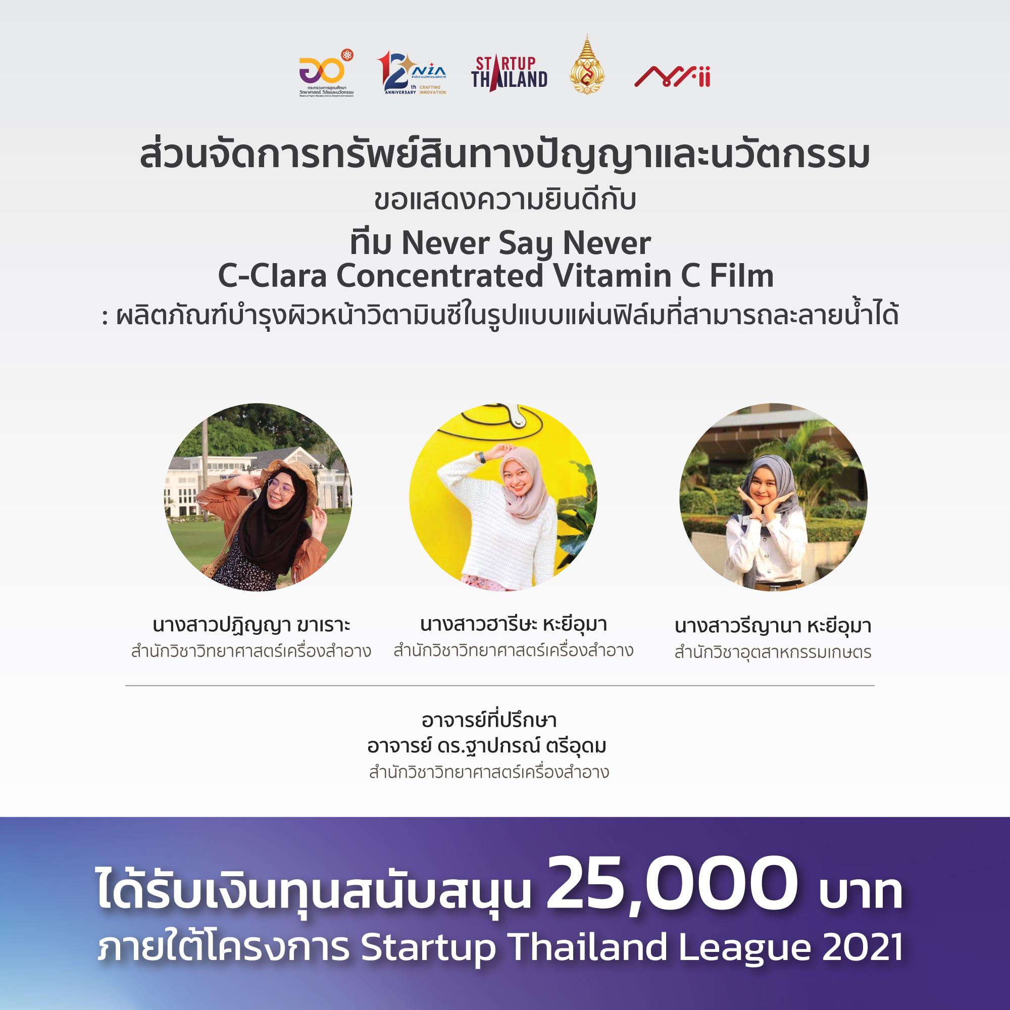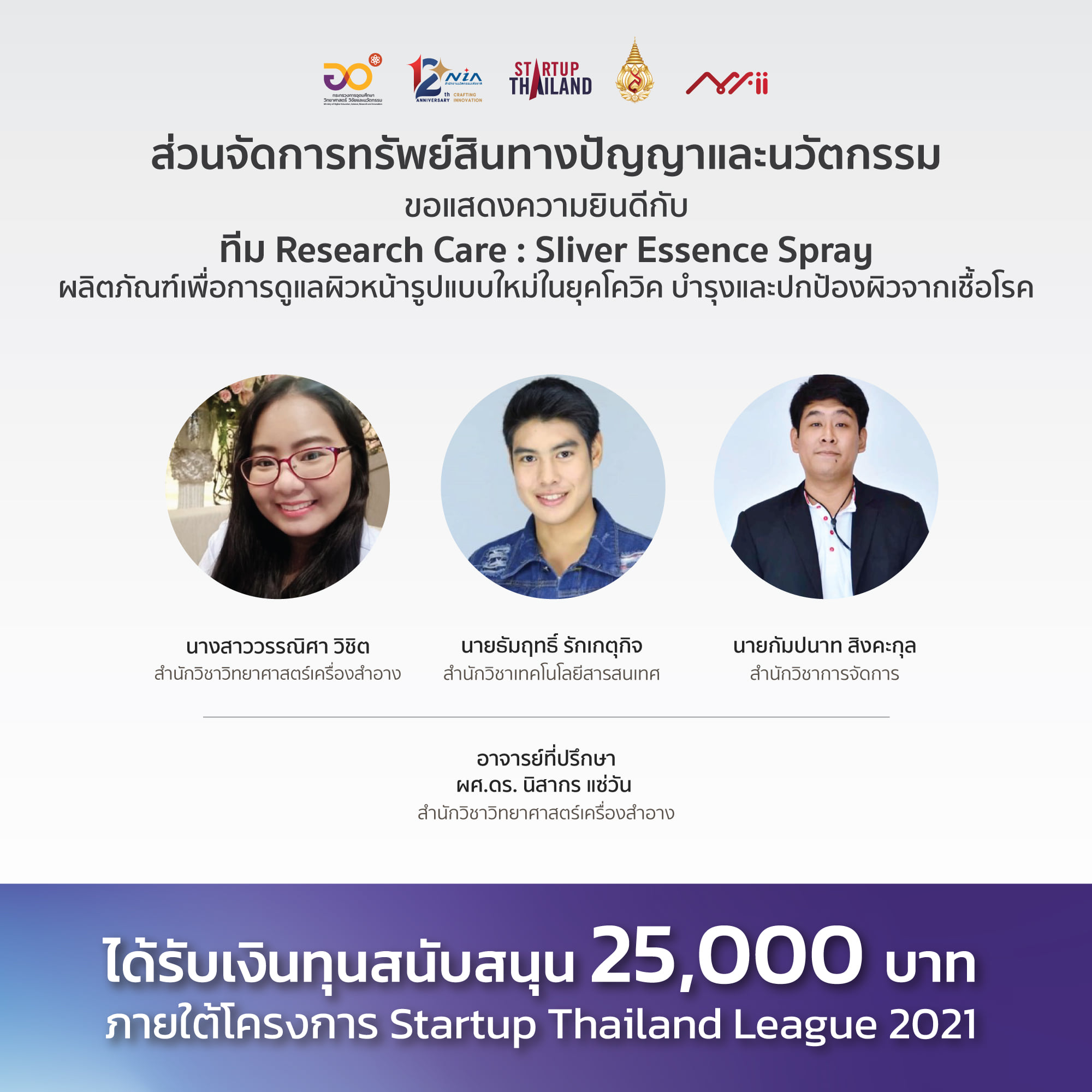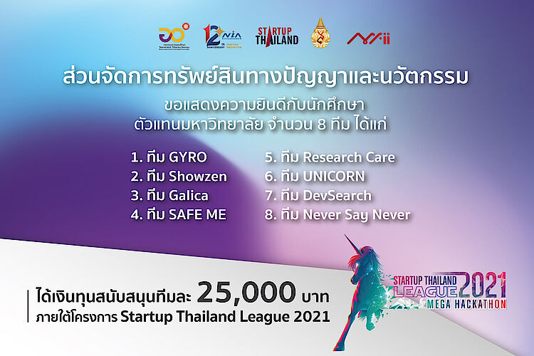 ผ่านการอนุมัติในรอบ Pitching จากสำนักงานนวัตกรรมแห่งชาติ (องค์การมหาชน) ภายใต้โครงการ Startup Thailand League 2021 จากผู้สมัครเข้าร่วมการแข่งขัน ทั้งหมด 400 ทีม 40 มหาวิทยาลัย โดยมหาวิทยาลัยแม่ฟ้าหลวงได้ส่งนักศึกษาเข้าร่วมการแข่งขันทั้งสิ้น จำนวน 10 ทีม ซึ่งทั้ง 8 ทีมที่ผ่านการอนุมัติ ได้แก่