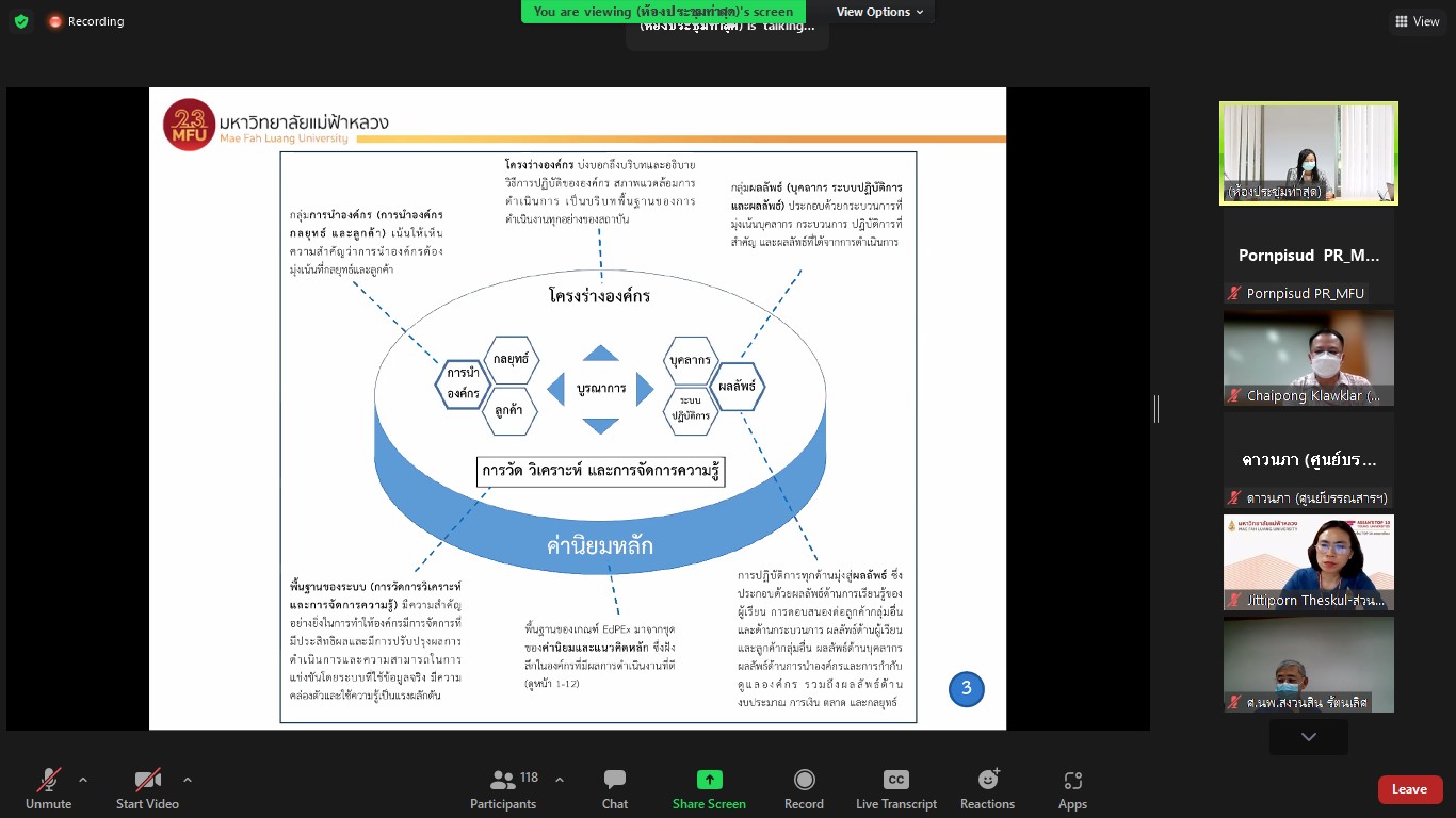 เมื่อวันที่ 27 สิงหาคม 2564 ส่วนประกันคุณภาพการศึกษาและพัฒนาหลักสูตร จัดการประชุมชี้แจงการจัดทำรายงานการประเมินตนเอง (SAR) ตามเกณฑ์คุณภาพการศึกษาเพื่อการดำเนินการที่เป็นเลิศ (EdPEx) ให้กับกลุ่มหน่วยงานสนับสนุน โดยมี ผศ.ดร.สุวรรณา เดชาทัย ผู้ช่วยอธิการบดี ศ.นพ.สงวนสิน รัตนเลิศ อาจารย์ประจำสำนักวิชาแพทยศาสตร์ พร้อมด้วยนายชัยพงศ์ แกล้วกล้า หัวหน้าส่วนประกันคุณภาพการศึกษาและพัฒนาหลักสูตร ร่วมให้ข้อมูล ณ ห้องประชุมท่าสุด อาคารวันชัย ศิริชนะ ร่วมกับผู้ประชุมผ่านโปรแกรม Zoom Meetings จำนวนกว่า 118 คน