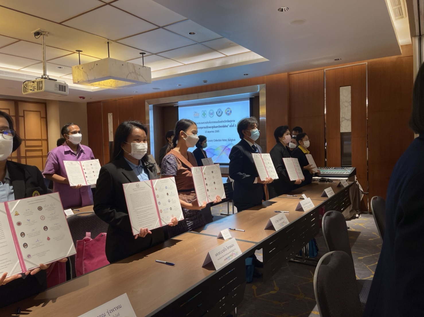 มหาวิทยาลัยแม่ฟ้าหลวง (มฟล.) โดยผศ.ดร.ธวัชชัย อภิเดชกุล คณบดีสำนักวิชาวิทยาศาสตร์สุขภาพ เข้าร่วม ประชุมสัมมนาระดมความคิดเห็นจากคณบดีองค์กรวิชาชีพสุขภาพ เรื่อง “การควบคุมการบริโภคยาสูบในมหาวิทยาลัยไทย” ครั้งที่ 3 (Dean Summit on Tobacco Control) ต่างๆ จัดโดยเครือข่ายวิชาชีพสุขภาพเพื่อสังคมไทยปลอดบุหรี่ และร่วมลงนามบันทึกข้อตกลงความร่วมมือการควบคุมการบริโภคยาสูบในมหาวิทยาลัย ของคณบดีสาขาวิชาชีพสุขภาพต่าง ๆ 7 สภาวิชาชีพ โดยมี ศ.(พิเศษ) ดร.เอนก เหล่าธรรมทัศน์ รัฐมนตรีว่าการกระทรวงการอุดมศึกษา วิทยาศาสตร์ วิจัยและนวัตกรรม เป็นประธานกล่าวเปิดงาน ในครั้งนี้ ผ่านระบบวีดีโอคอนเฟอเรนซ์ เพื่อขยายผลความร่วมมือให้แพร่ขยายเป็นวงกว้างและเข้มข้นยิ่งขึ้น เพื่อวิชาชีพสุขภาพไทยปลอดภัยบุหรี่อย่างยั่งยืน เมื่อวันที่ 10 พฤษภาคม 2565 ณ โรงแรม ดิ แอทธินี โฮเทลแบงค็อก กรุงเทพฯ