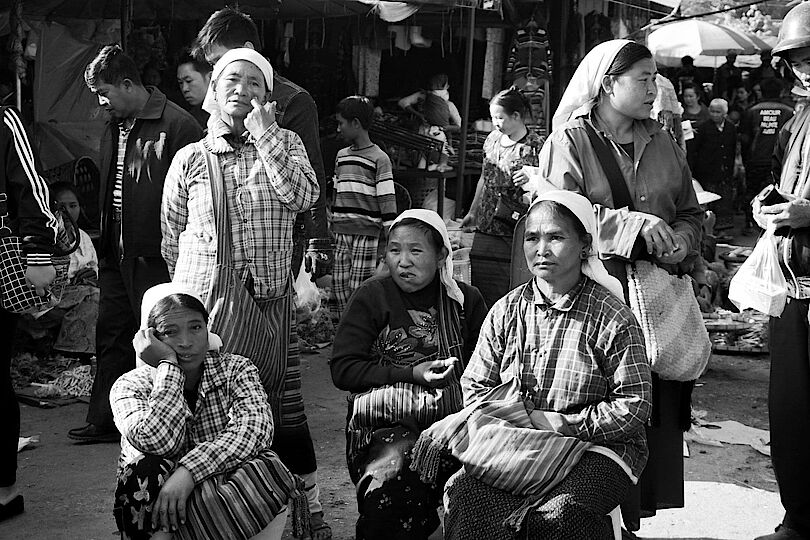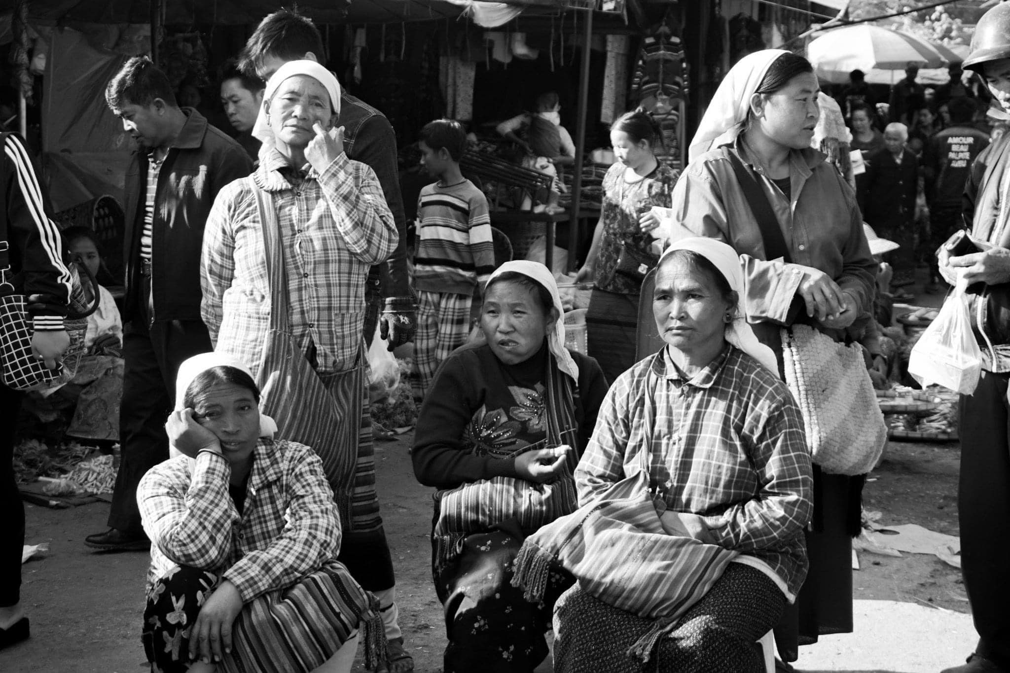 ตอนเช้าตรู่ในช่วงขึ้นปีใหม่ ที่เมืองเชียงตุง รัฐฉาน เราจะมีโอกาสได้เห็นชาวบ้านหลากหลายชาติพันธุ์ เช่น ชาวไทใหญ่ จีน ว้า กะชีน ปะหล่องและอื่น ๆ อีกมากมาย มาจ่ายตลาดกันที่ตลาด ကျိုင်းတုံမြို့မေစျး (Keng Tung city market) ซึงเป็นตลาดที่ใหญ่ทีสุดใจกลางเมืองเชียงตุง ทำให้ตลาดนี้กลายเป็นตลาดเช้าที่อบอวลไปด้วยบรรยากาศที่กระฉัยกระเฉง เต็มไปด้วยผู้คนที่มีความแตกต่างกันตั้งแต่การแต่งกาย ภาษาและ สำเนียงการพูด เดินขวักไขว่ไปมาเพื่อจ่ายตลาดในช่วงขึนปีใหม่ ในภาพนี้กลุ่มแม่บ้านที่กำลังนั่งพักเพื่อคลายความอ่อนล้า หลังจากเดินในตลาดที่คับคั่งไปด้วยผู้คน สังเกตจากลักษณะการแต่งกายที่มีผ้าโพกหัวสีขาว ทำให้เราทราบได้ว่า นี่คือกลุ่มชนกลุ่มน้อยว้า ความมีเอกลักษณ์ของตลาดนี้สะท้อนให้เห็นถึงการอยู่ร่วมกันท่ามกลางความหลากหลายของชาติพันธุ์ แม้จะมีวิถีชีวิตหรือมุมมองที่แตกต่างกันออกไปก็สามารถอยู่ร่วมกันในสังคมพหุวัฒนธรรมนี้ได้และจะก่อเกิดเป็นวัฒนนธรรมที่งดงามเป็นเอกลักษณ์ให้กับคนในชาติสืบต่อไป