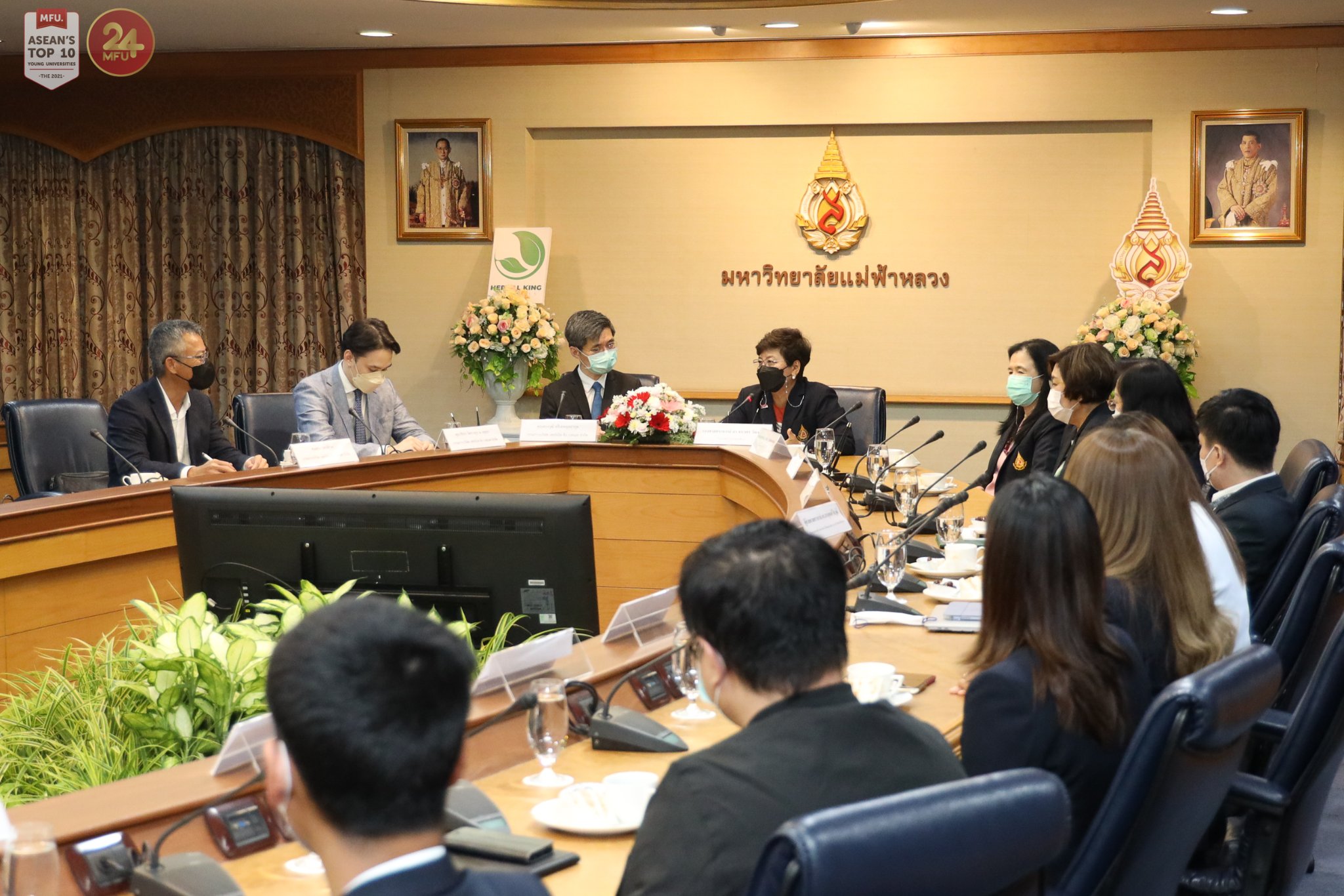 รองศาสตราจารย์ ดร.ชยาพร วัฒนศิริ อธิการบดี มฟล. กล่าวต้อนรับและแนะนำมหาวิทยาลัยว่า มหาวิทยาลัยแม่ฟ้าหลวงจะครบรอบ 24 ปี ในปี 2565 นี้