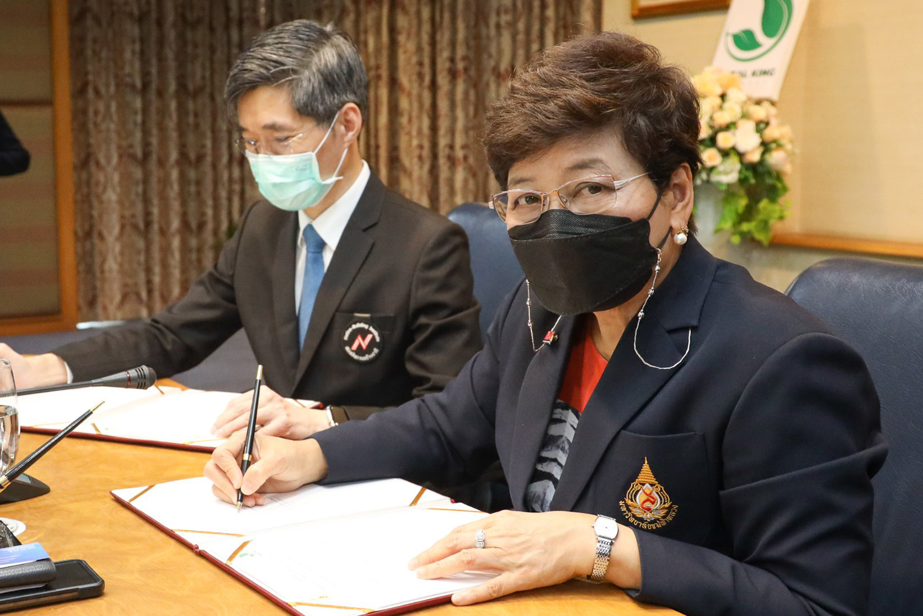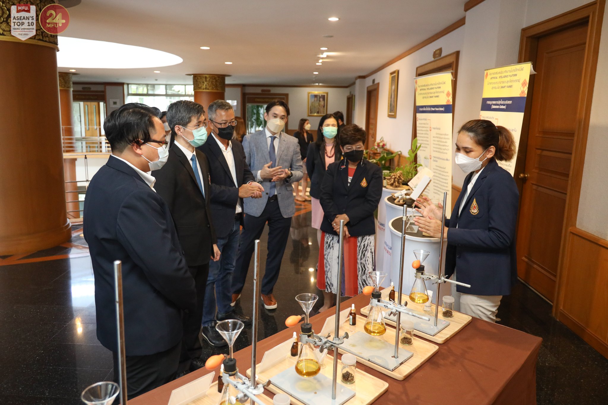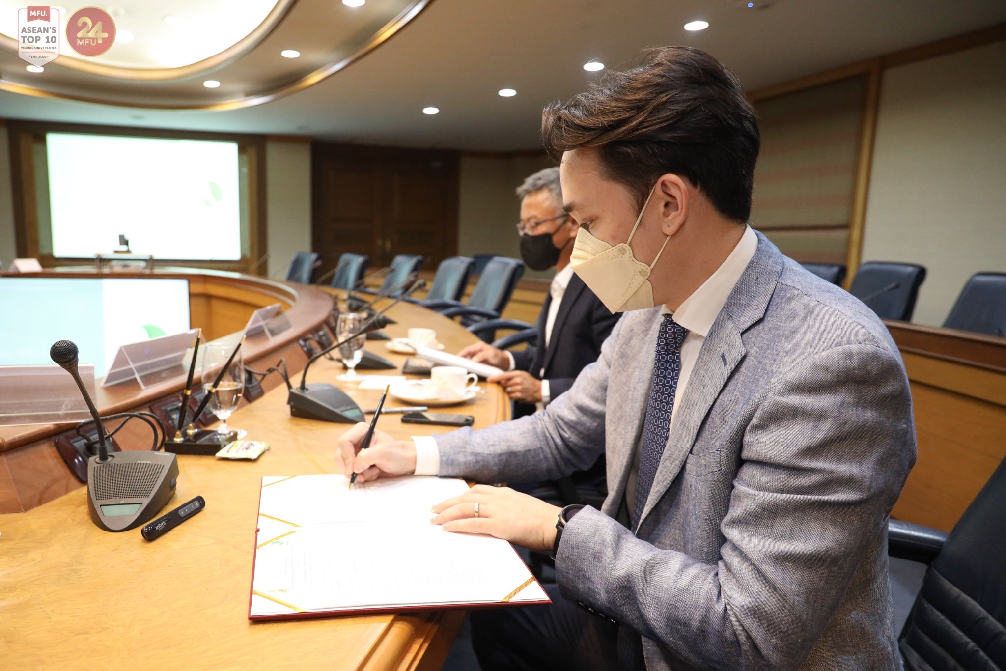 “นอกจากนี้ยังมีความร่วมมือของสถาบันวิจัยและนวัตกรรม ส่วนจัดการทรัพย์สินทางปัญญาและนวัตกรรม เพราะการทำงานที่จะเกิดขึ้น มีกลไกที่เกี่ยวกันพันในการสร้างงานวิจัยและนวัตกรรม รวมถึงกลไกในการนำมาใช้ประโยชน์ร่วมกันอย่างชัดเจน โดยเฉพาะการนำไปใช้ประโยชน์ในเชิงพาณิชย์ ก็เป็นอีกเป้าหมายหนึ่งของมหาวิทยาลัย การที่จะนำเหล่าอาจารย์ไปทำงานด้านธุรกิจอาจไม่ได้มีความเชี่ยวชาญมากนัก เพราะอาจารย์ถนัดที่จะสอน ถนัดสร้างองค์ความรู้ ถนัดทำวิจัย มหาวิทยาลัยอาจเป็นตัวกลางน้ำที่จะผลิตงานวิจัย ทำผลิตภัณฑ์ออก เราจึงจับมือกับคนที่นำไปสู่ปลายน้ำในเชิงพาณิชย์ เพื่อหาพาร์ทเนอร์มาเสริมในจุดที่เราอยากเข้มแข็ง เพื่อไปถึงเป้าหมายที่วางไว้ร่วมกัน” อธิการบดี มฟล. กล่าว