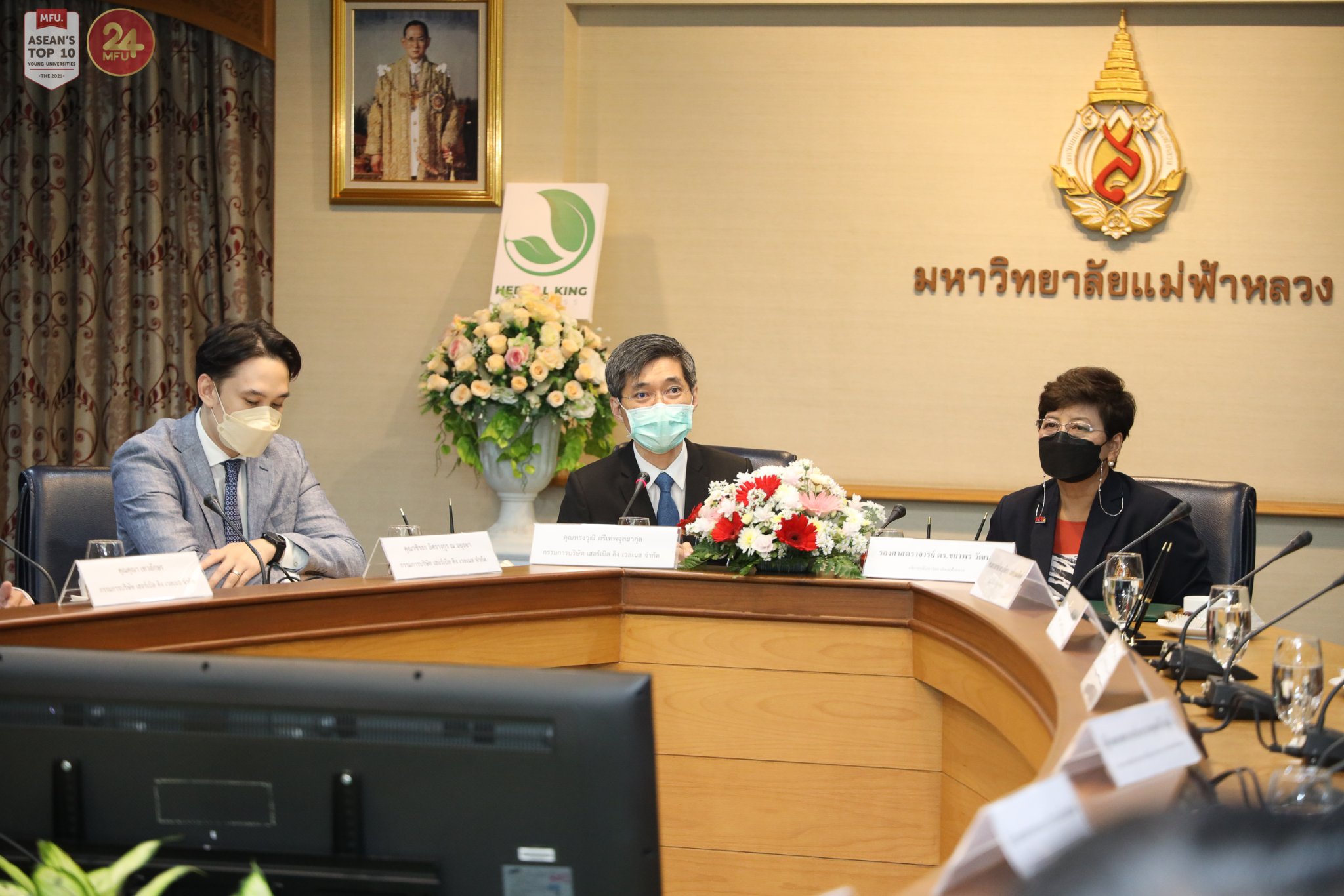 มหาวิทยาลัยแม่ฟ้าหลวง (มฟล.) จัดพิธีลงนามบันทึกข้อตกลงความร่วมมือทางวิชาการ (MOU) ร่วมกับ บริษัท เฮอร์เบิล คิง เวลเนส จำกัด เมื่อวันอังคารที่ 23 สิงหาคม 2565 ณ ห้องประชุมดอยตุง อาคารวันชัย ศิริชนะ มหาวิทยาลัยแม่ฟ้าหลวง โดย รองศาสตราจารย์ ดร.ชยาพร วัฒนศิริ อธิการบดี และ ศาสตราจารย์ ดร.สุจิตรา วงศ์เกษมจิตต์ รองอธิการบดี เป็นผู้ลงนามฝ่ายมหาวิทยาลัยแม่ฟ้าหลวง และผู้ลงนามฝ่ายบริษัท เฮอร์เบิล คิง เวลเนส จำกัด คือ คุณทรงวุฒิ ตรีเทพจุลยากูล กรรมการบริษัทฯ และ คุณวชิรธร อิศรางกูร ณ อยุธยา กรรมการผู้จัดการบริษัทฯ