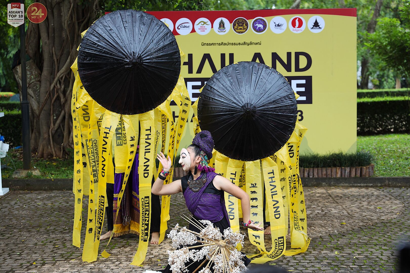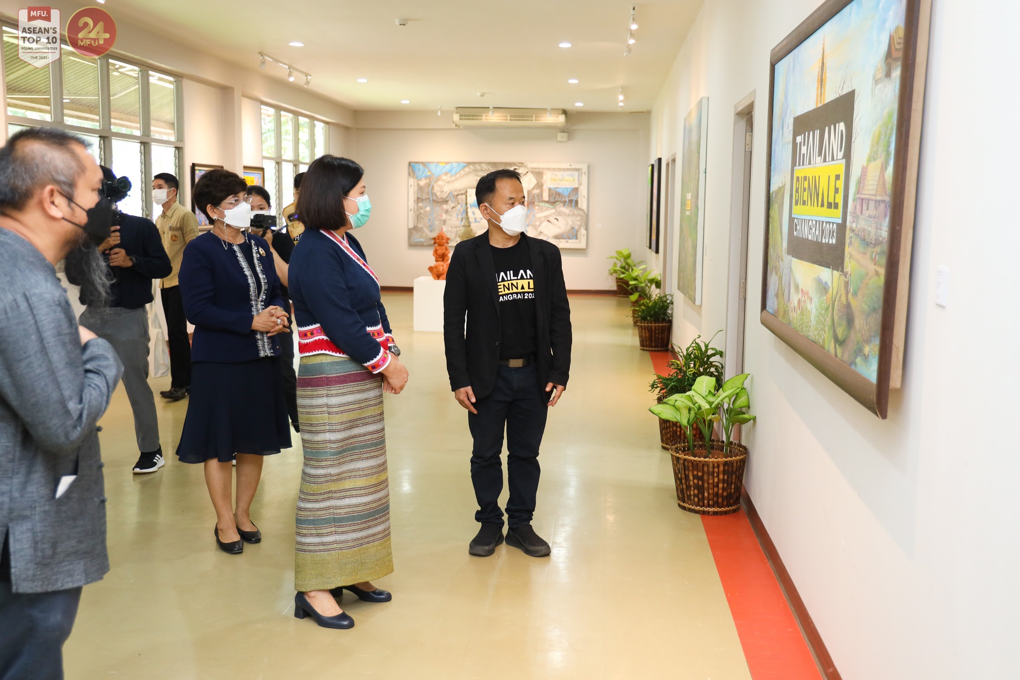 อธิการบดี มฟล. กล่าวว่า มฟล. ในฐานะสถาบันการศึกษาที่ได้รับการจัดอันดับว่ามีความเป็นนานาชาติอยู่ในลำดับต้น ๆ ของประเทศมีนโยบายขับเคลื่อนเมืองเชียงรายไปสู่ความยั่งยืนโดยเฉพาะเรื่องสิ่งแวดล้อมและศิลปะวัฒนธรรมล้านนาเชื่อมโยงภูมิภาคลุ่มน้ำโขงเพื่อยกระดับคุณภาพชีวิตผู้คนและมีความยั่งยืนเป็นเป้าหมายสำคัญ นอกจากนี้ มฟล. ยังมีส่วนร่วมในการพัฒนาเชียงรายให้ก้าวเข้าสู่การแข่งขันในเวทีโลกด้านการศึกษาสุขภาพและงานสร้างสรรค์ผลงานศิลปะที่ประชาชนได้ประโยชน์ ลดความยากจนพัฒนาเมืองให้มีความให้มีพื้นที่ความคิดสร้างสรรค์ และพร้อมที่จะเพิ่มศักยภาพให้นักศึกษาและประชาชนทั่วทุกระดับ ทั้งนี้ มฟล. ยินดีเข้าร่วมสนับสนุนกิจกรรมไทยแลนด์เบียนนาเล่, เชียงราย 2023 ทางด้านวิชาการและการจัดกิจกรรมที่เกี่ยวข้องด้วยความยินดี