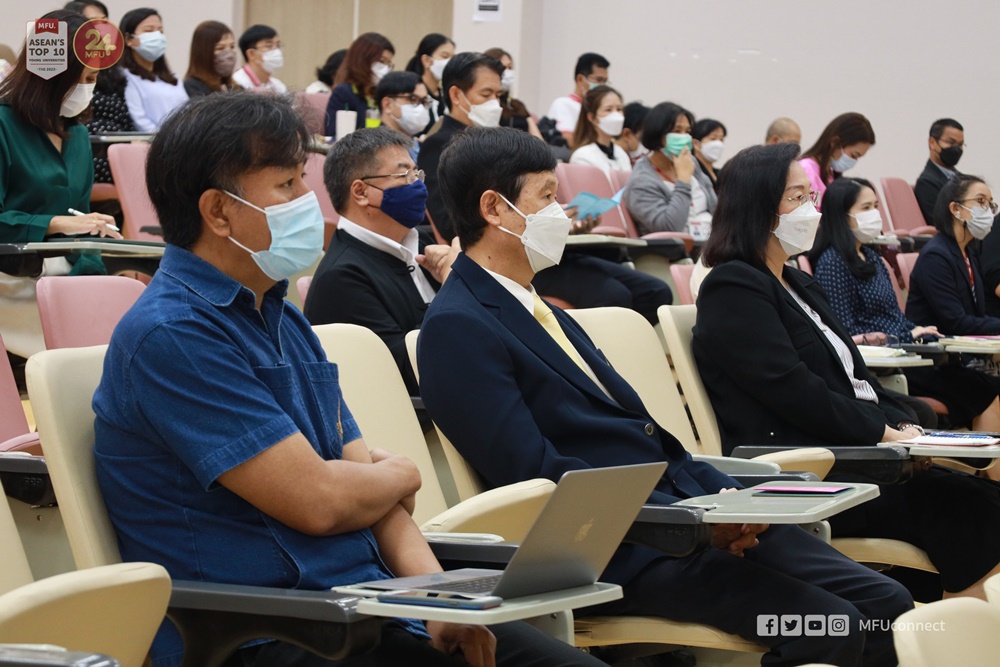 เมื่อวันที่ 12 ตุลาคม 2565 มหาวิทยาลัยแม่ฟ้าหลวง (มฟล.) จัดการบรยายในหัวข้อ How to Be Leaders with Ethical and Responsibility โดย ศาสตราจารย์เกียรติคุณ นพ. เกษม วัฒนชัย องคมนตรี ให้กับผู้เข้าร่วมโครงการผู้บริหารมหาวิทยาลัยรุ่นใหม่ มหาวิทยาลัยแม่ฟ้าหลวง รุ่นที่ 2 (MFU Young University Leaders Programme2: MFU-YUL2) โดยมีวัตถุประสงค์เพื่อให้ผู้เข้าร่วมโครงการฯ ได้เรียนรู้การเป็นผู้นำในวิถีใหม่ที่เข้าใจในบทบาทและสามารถบริหารจัดการด้านต่างๆ จากผู้ทรงคุณวุฒิผู้เปี่ยมด้วยประสบการณ์ด้านการอุดมศึกษาและพัฒนาศักยภาพบุคลากรในระดับชาติมายาวนาน โดยมี รองศาสตราจารย์ ดร.ชยาพร วัฒนศิริ อธิการบดี กล่าวต้อนรับ และ รองศาสตราจารย์ ดร.นันทนา คชเสนี รองอธิการบดี กล่าวรายงาน
