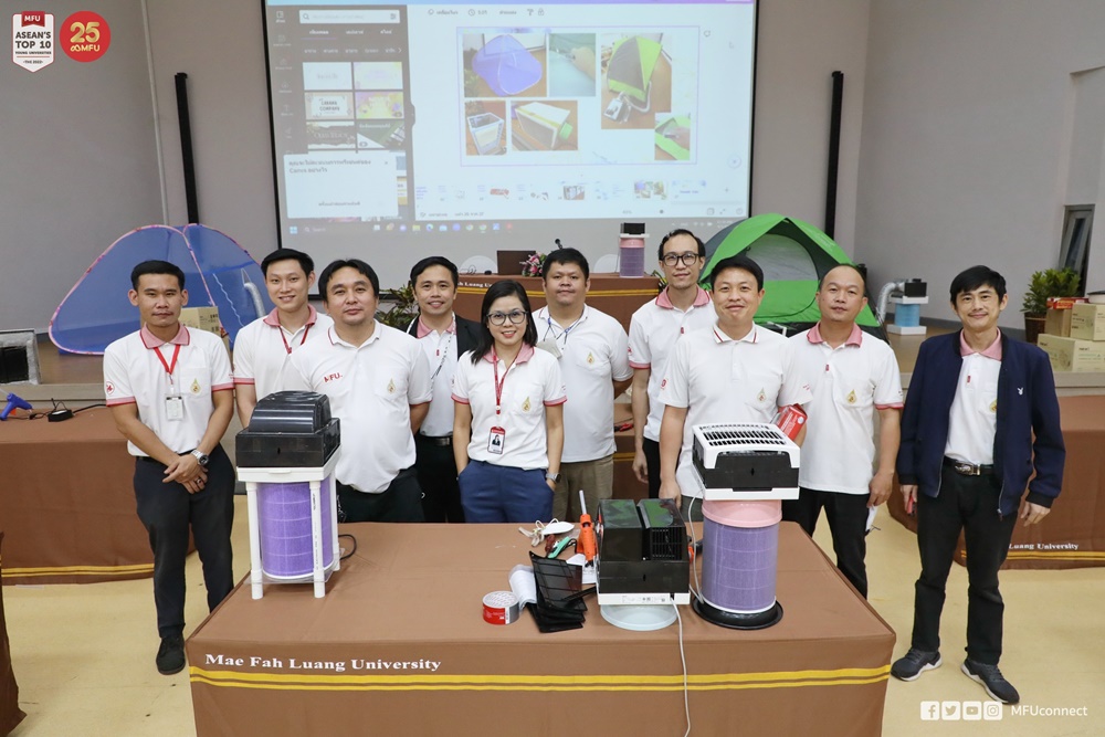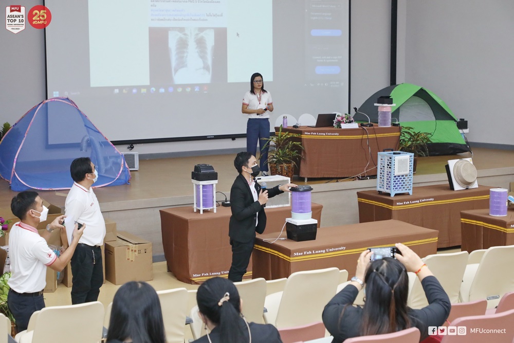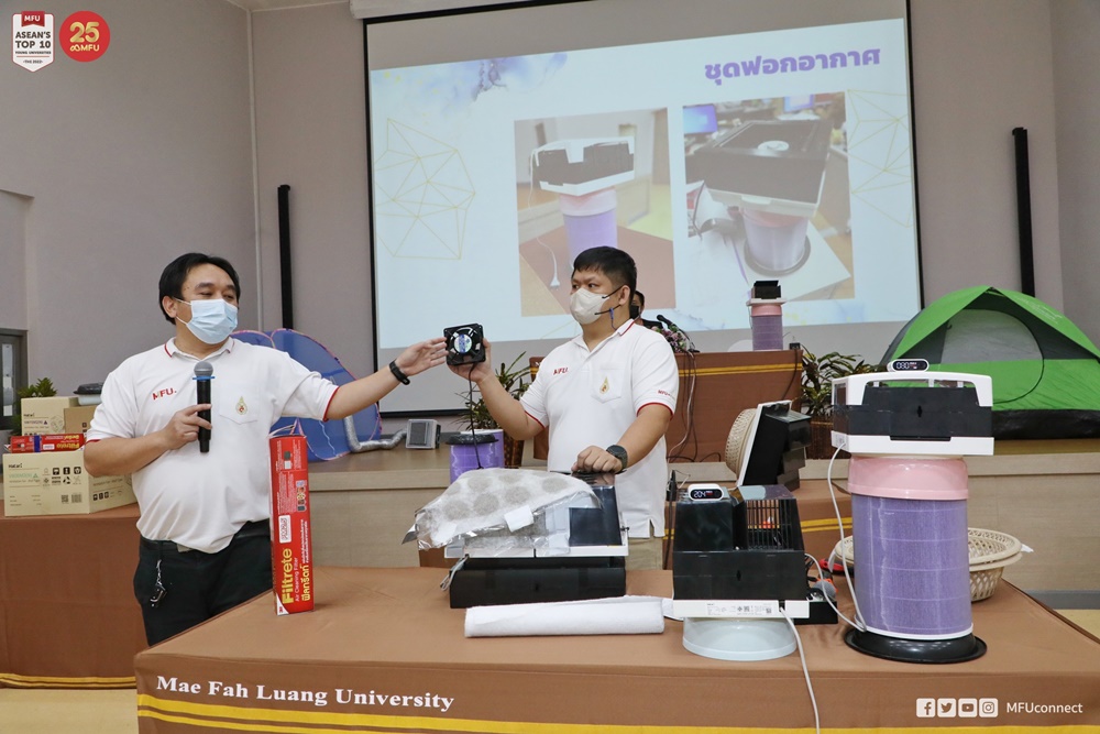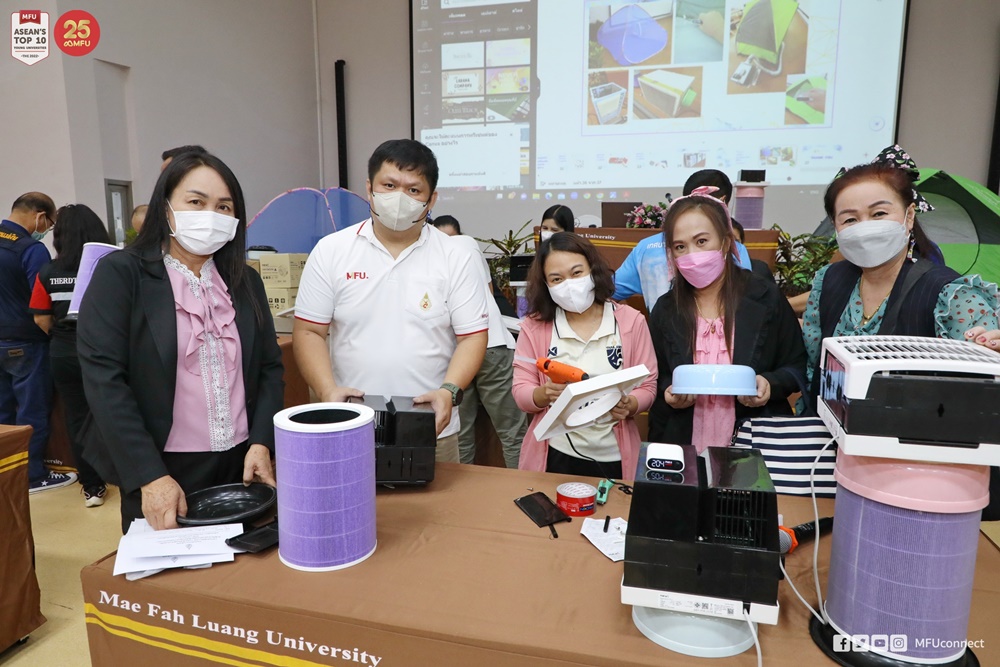 มหาวิทยาลัยแม่ฟ้าหลวง (มฟล.) โดย ‘ศูนย์ศึกษาวิจัยและปฏิบัติการเพื่อลดปัญหาการเกิดไฟป่า หมอกควัน ในประเทศไทยและในภูมิภาค’ จัดโครงการฝึกอบรมเชิงปฏิบัติการจัดทำพื้นที่ปลอดฝุ่นสำหรับกลุ่มเสี่ยงและฝึกปฏิบัติการทำอุปกรณ์สำหรับพัฒนาพื้นที่ปลอดฝุ่นอย่างง่ายด้วยตัวเอง โดยมีตัวแทนศูนย์เด็กเล็กของท้องถิ่นและเอกชนในพื้นที่จังหวัดเชียงราย กว่า 100 แห่ง เข้าร่วมฝึกอบรมเชิงปฏิบัติการทำเครื่องฟอกอากาศและเครื่องเติมอากาศ ( Air Filter & Aerator DIY Workshop) การจัดทำพื้นที่ปลอดฝุ่นสำหรับกลุ่มเสี่ยง ฝึกปฎิบัติการทำอุปกรณ์ สำหรับพัฒนาพื้นที่ปลอดฝุ่นอย่างง่ายด้วยตนเอง (DIY) วิทยากรจากศูนย์เครื่องมือวิทยาศาสตร์ มฟล., พร้อมให้ความรู้เรื่องเกี่ยวกับผลกระทบต่อสุขภาพที่มาจากฝุ่น P.M. 2.5 ต่อกลุ่มเปราะบาง โดยนักวิจัยจากสำนักวิทยาศาสตร์ เมื่อวันที่ 5 เมษายน 2566 ที่ห้องประดู่แดง มหาวิทยาลัยแม่ฟ้าหลวง ท่ามกลางสถานการณ์หมอกควันที่กระทบต่อคุณภาพชีวิต สุขภาพของคน และเศรษฐกิจภาคเหนือในวงกว้าง