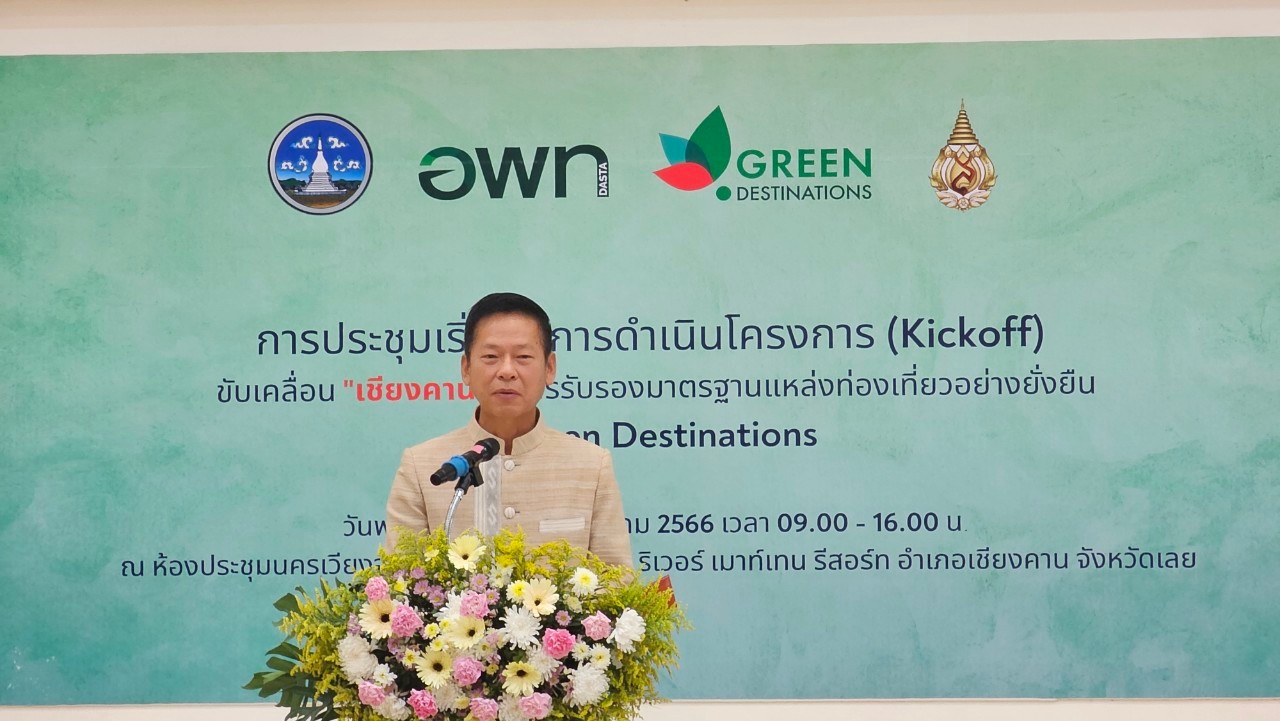 มหาวิทยาลัยแม่ฟ้าหลวง ร่วมกับองค์การบริหารการพัฒนาพื้นที่พิเศษเพื่อการท่องเที่ยวอย่างยั่งยืน (องค์การมหาชน) โดย สำนักงานพื้นที่พิเศษ 5 จัดการประชุมเริ่มต้นการดำเนินโครงการ (Kickoff) ขับเคลื่อนเชียงคานสู่การรับรองมาตรฐานแหล่งท่องเที่ยวอย่างยั่งยืน Green Destinations ในวันพฤหัสบดีที่ 25 พฤษภาคม 2566 ณ ห้องประชุมนครเวียงจันทน์ โรงแรมเชียงคาน ริเวอร์เมาท์เทน รีสอร์ท อำเภอเชียงคาน จังหวัดเลย มีหน่วยงานภาครัฐ ภาคธุรกิจ และภาคประชาสังคม ภาควิชาการ และภาคประชาชน เข้าร่วมกิจกรรมกว่า 80 คน โดยได้รับเกียรติจาก นายศิริวัฒน์ พินิจพานิชย์ รองผู้ว่าราชการจังหวัดเลย เป็นประธานกล่าวเปิดงานและเป็นตัวแทนชาวเชียงคานประกาศเจตนารมณ์ร่วมกันขับเคลื่อนเชียงคานให้เป็นเมืองท่องเที่ยวต้นแบบการท่องเที่ยวอย่างยั่งยืนตามมาตรฐาน Green Destinations