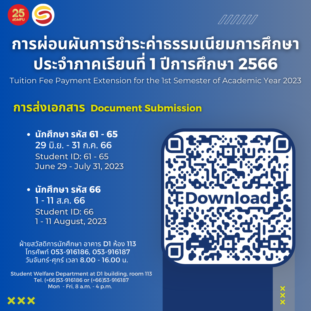 การผ่อนผันการชำระค่าธรรมเนียมการศึกษา ภาคเรียนที่ 1 ปีการศึกษา 2566