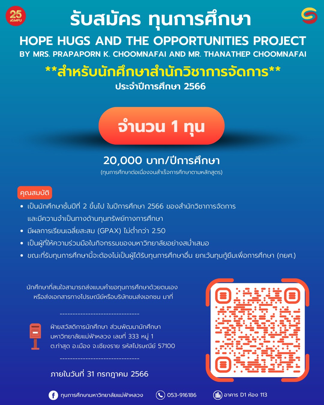 นักศึกษาที่สนใจสามารถส่งแบบคำขอทุนการศึกษาด้วยตนเอง