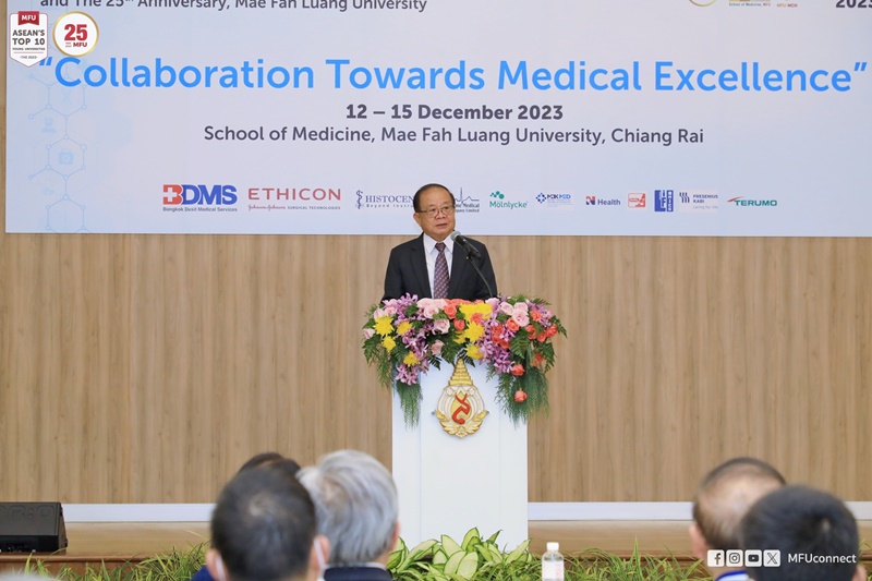 สำนักวิชาแพทยศาสตร์ มหาวิทยาลัยแม่ฟ้าหลวง (มฟล.) จัดการประชุมวิชาการสำนักวิชาแพทยศาสตร์ ประจำปี 2566 AnnualScientific Congress Celebrating 12th Anniversary of the School of Medicine and 25th Anniversary of Mae Fah Luang University ในหัวข้อ ‘Collaboration Towards Medical Excellence’ ระหว่างวันที่ 12 -15 ธันวาคม 2566 ที่อาคารสำนักวิชาแพทยศาสตร์ มหาวิทยาลัยแม่ฟ้าหลวง เพื่อฉลองครบรอบ 12 ปีการก่อตั้งสำนักวิชาแพทยศาสตร์ มฟล. และครบรอบ 25 ปีในการก่อตั้งมหาวิทยาลัยแม่ฟ้าหลวง