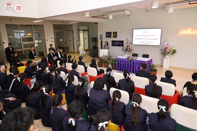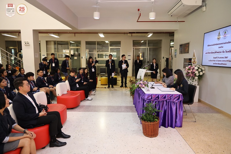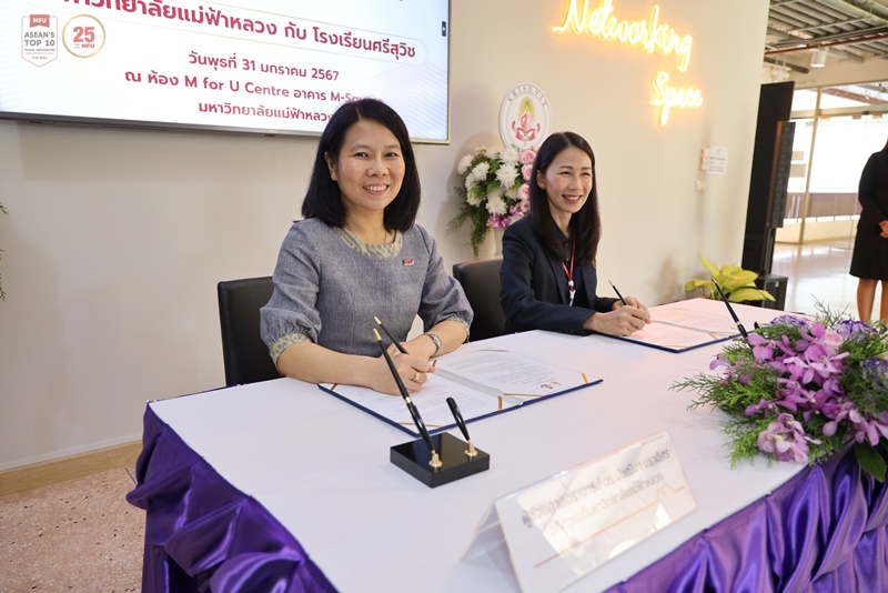 มหาวิทยาลัยแม่ฟ้าหลวง และโรงเรียนศรีสุวิช จ.ชลบุรี ได้จัดพิธีลงนามในบันทึกข้อตกลงความร่วมมือทางวิชาการร่วมกัน โดย ผู้ช่วยศาสตราจารย์ ดร.มัชฌิชา นราดิศร อธิการบดีมหาวิทยาลัยแม่ฟ้าหลวง และ ดร.ประถมาภรณ์ ฟักฤกษ์ ผู้อำนวยการโรงเรียนศรีสุวิช ลงนามร่วมกัน ในพิธีการมี ดร.ณัฐวุฒิ ยอดสุวรรณ ผู้อำนวยการศูนย์บริการวิชาการ มหาวิทยาลัยแม่ฟ้าหลวง กล่าวรายงานถึงความเป็นมาในการจัดทำบันทึกข้อตกลงความร่วมมือวิชาการ และ ดร.ประถมาภรณ์ ฟักฤกษ์ ผู้อำนวยการโรงเรียนศรีสุวิช กล่าวถึงความร่วมมือในการดำเนินงานภายใต้บันทึกข้อตกลงความร่วมมือบริบทของมหาวิทยาลัยแม่ฟ้าหลวง เมื่อวันที่ 31 มกราคม 2567 เวลา 11.00- 11.45 น. ที่ M for U Centre อาคาร M-Square มหาวิทยาลัยแม่ฟ้าหลวง