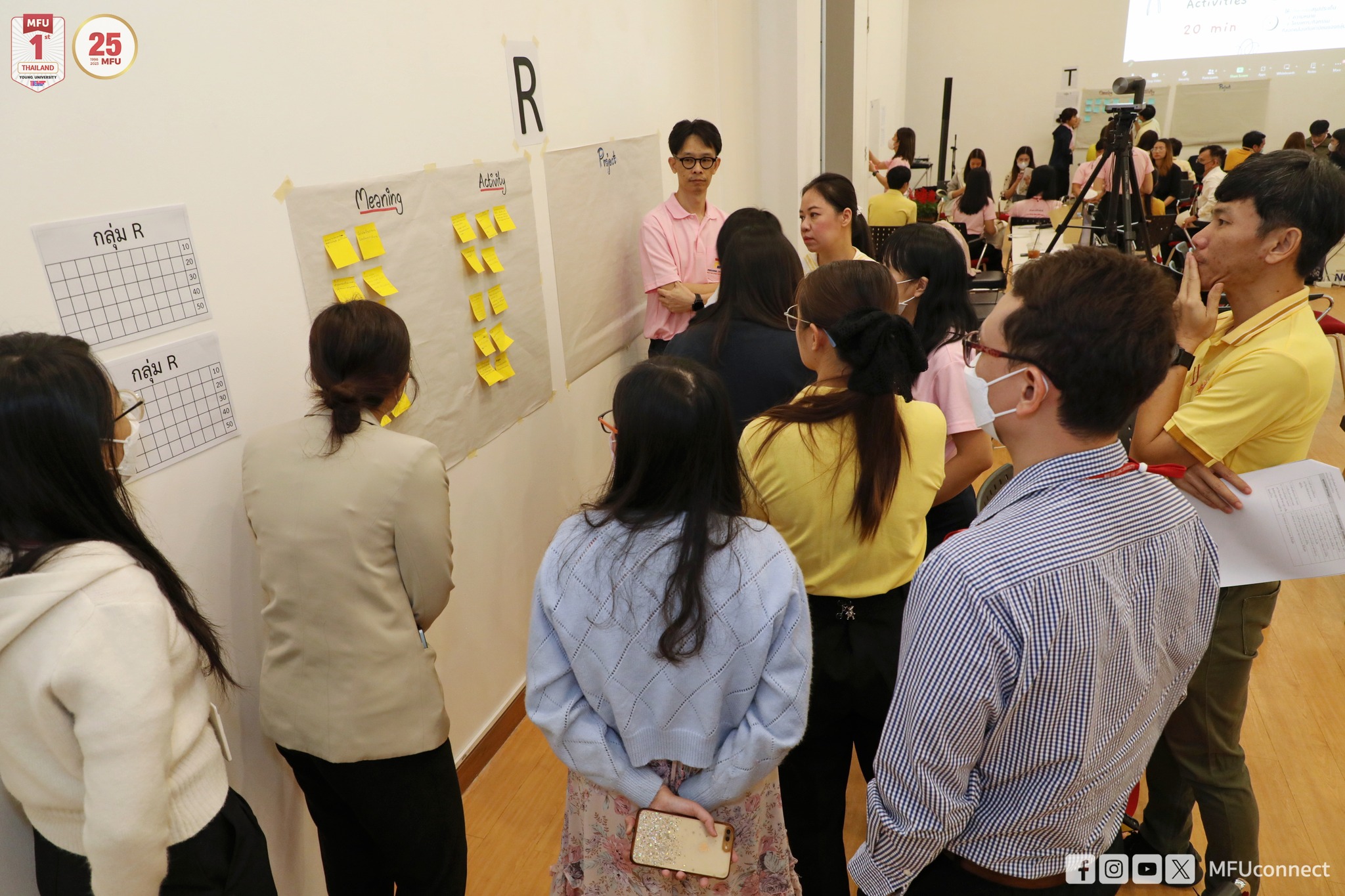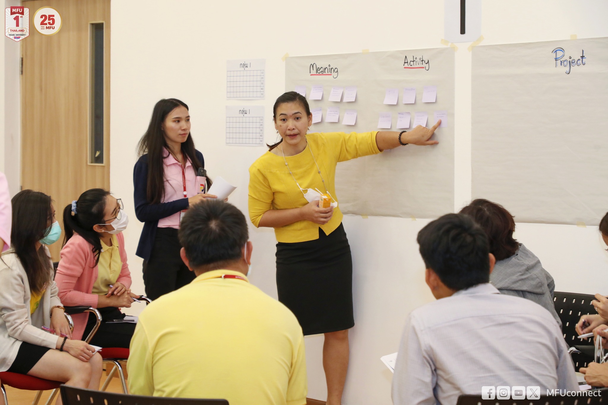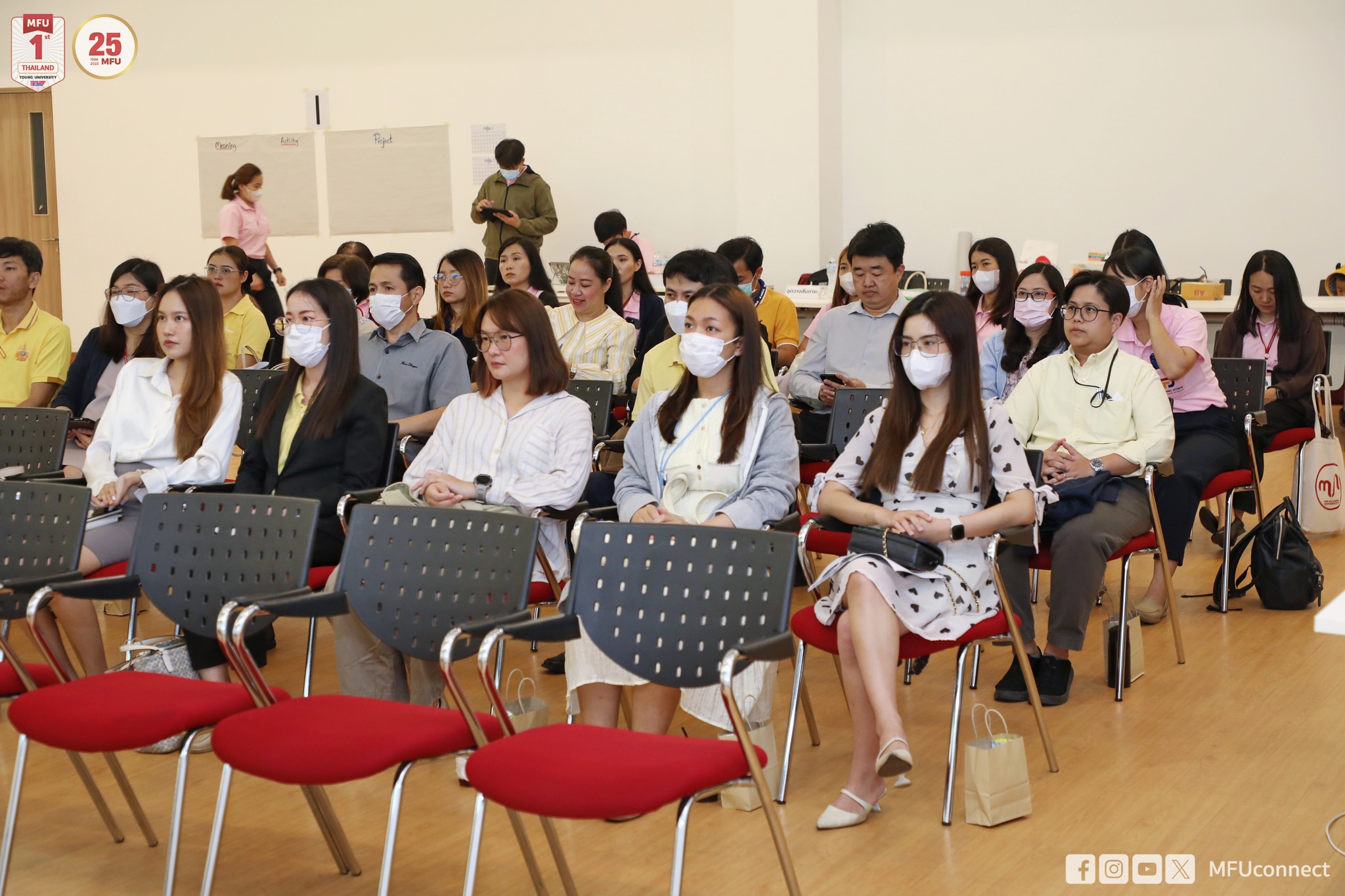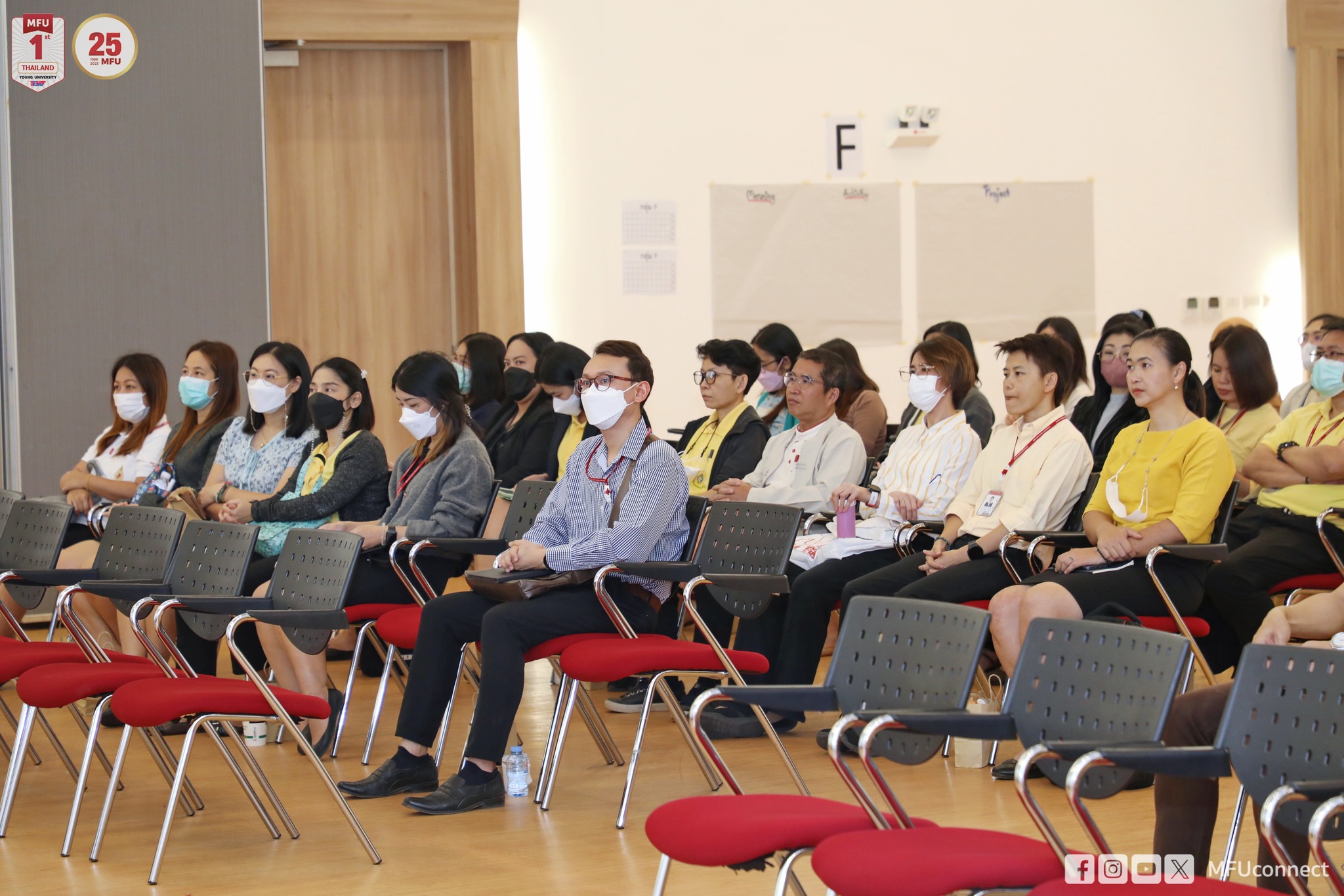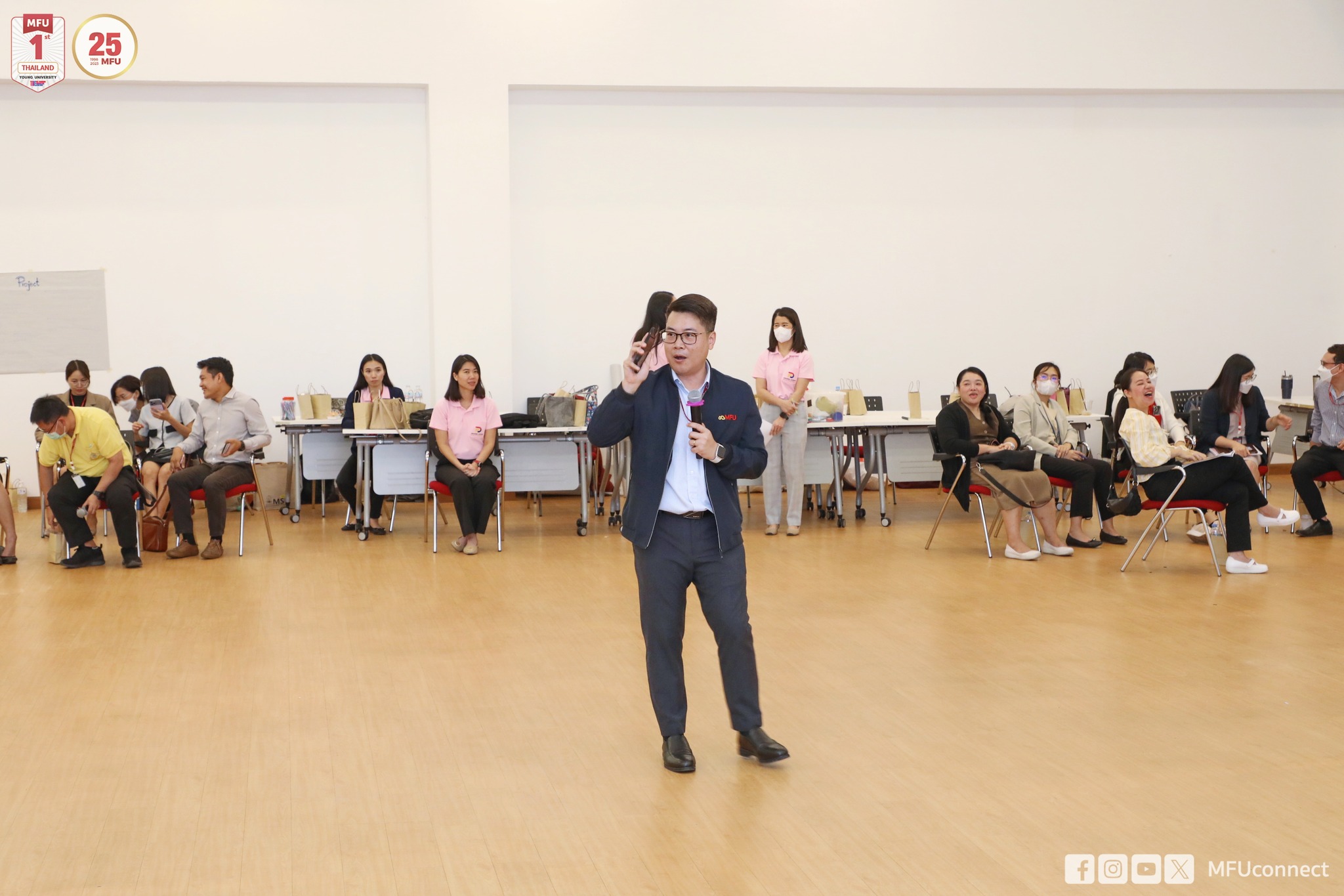 นอกจากนี้ อาจารย์ ดร.ณัฐวุฒิ ยอดสุวรรณ ผู้อำนวยการศูนย์บริการวิชาการ มหาวิทยาลัยแม่ฟ้าหลวง ร่วมเป็นวิทยากรช่วง Workshop กิจกรรมกลุ่ม “ค่านิยมองค์กร MFU FIRST” โดยแบ่งกลุ่มออกเป็น 6 กลุ่มตามตัวอักษร : F I R S T และ FIRST เพื่อให้ทุกคนได้ร่วมกันแสดงความคิดเห็นในความหมายของอักษรแต่ละตัว รวมถึงกิจกรรมที่มหาวิทยาลัยได้ดำเนินการที่สอดคล้อง และสุดท้ายร่วมกันออกแบบโครงการหรือกิจกรรมเพื่อส่งเสริมค่านิยมองค์กร MFU FIRST ในอนาคต