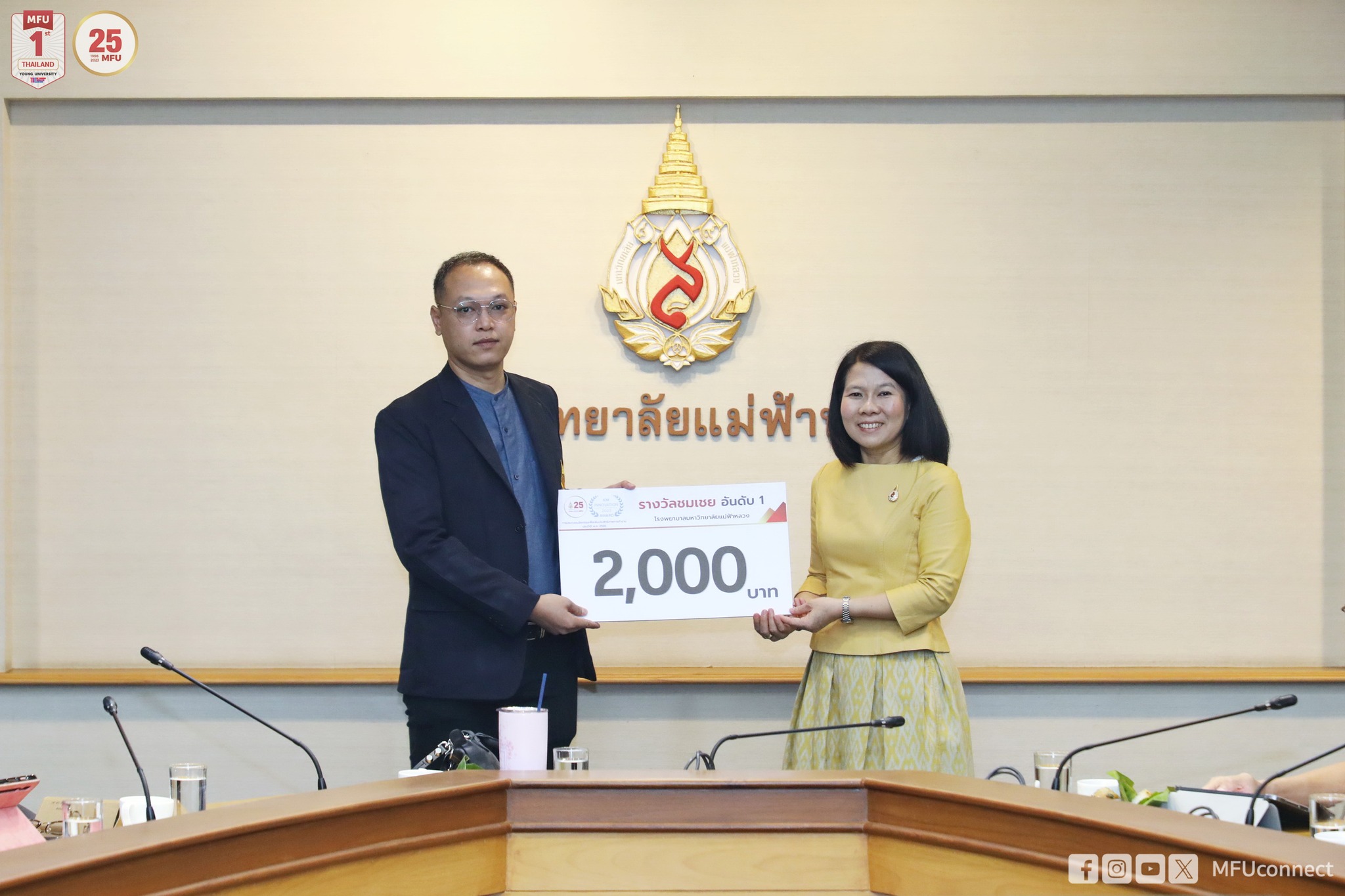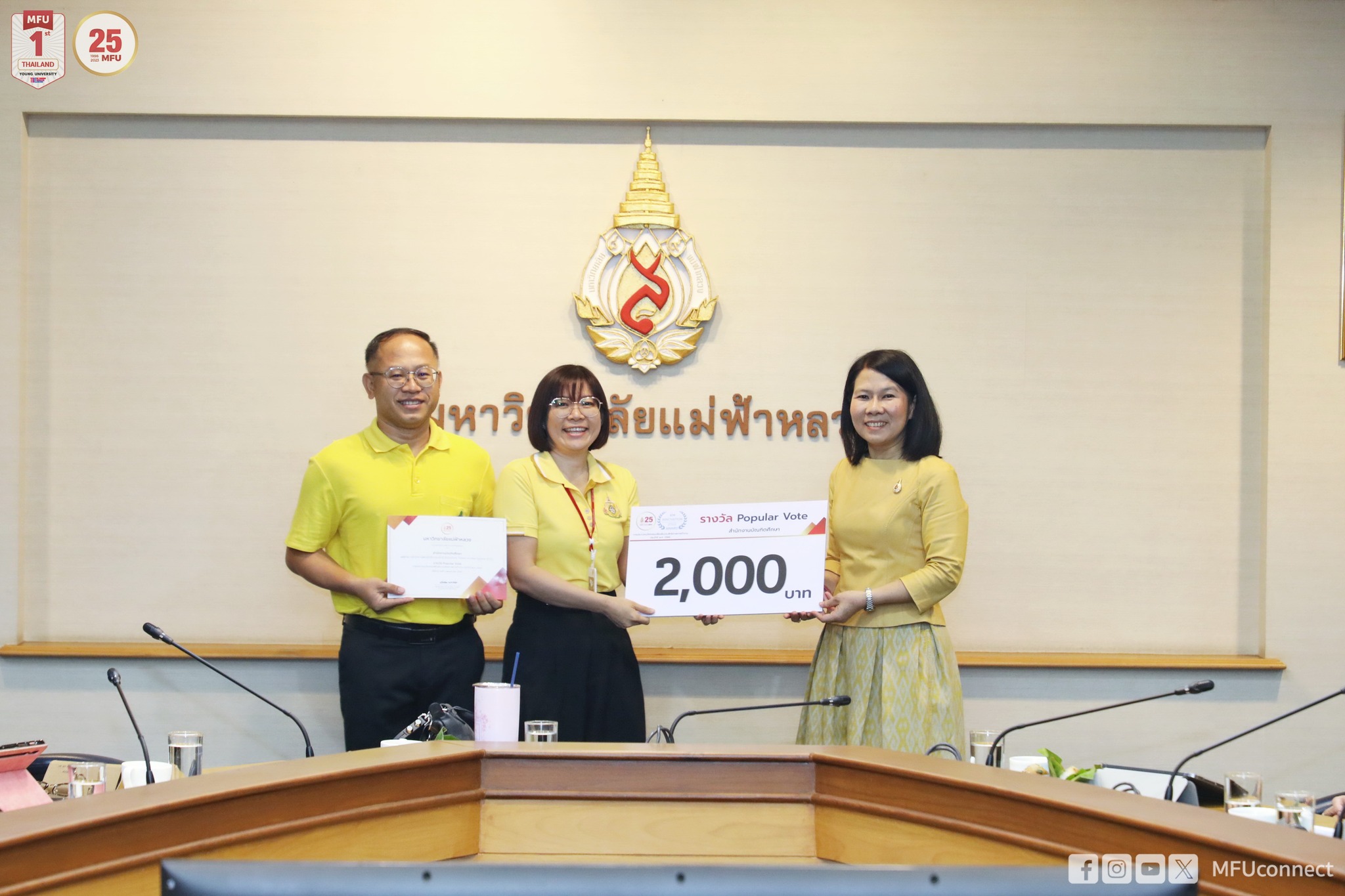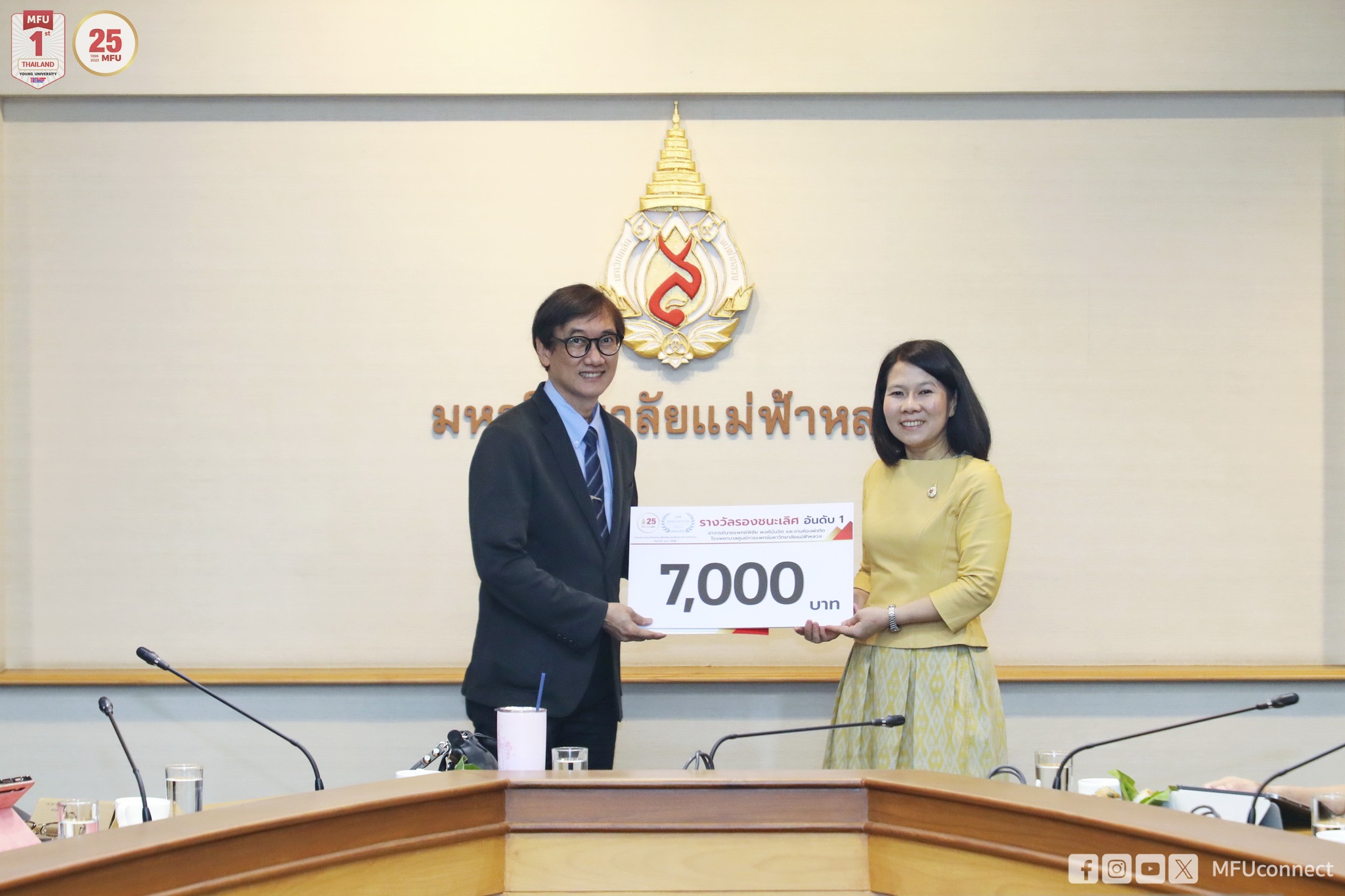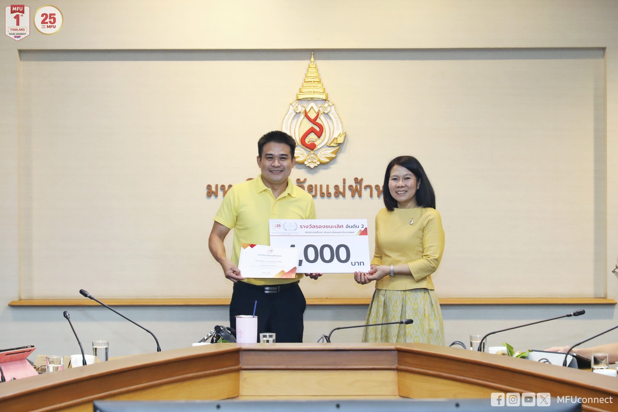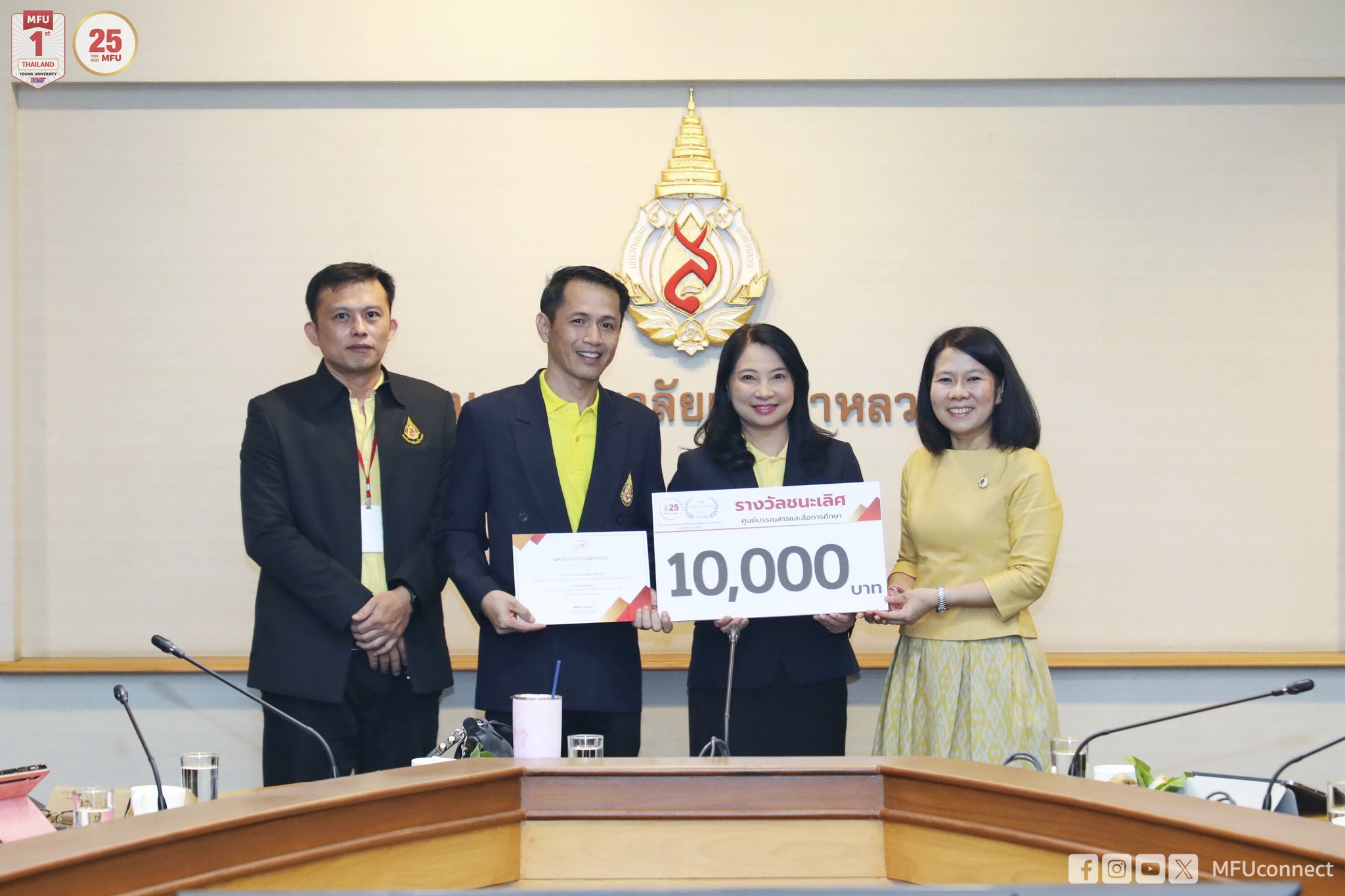 • รางวัลรองชนะเลิศ อันดับ 1 ผลงาน MFU-Knot Pusher : An innovation for cystic duct and vessels ligation in Laparoscopic Cholecystectomy โดย : อาจารย์นายแพทย์พิชัย พงศ์มั่นจิต และงานห้องผ่าตัด โรงพยาบาลศูนย์การแพทย์มหาวิทยาลัยแม่ฟ้าหลวง