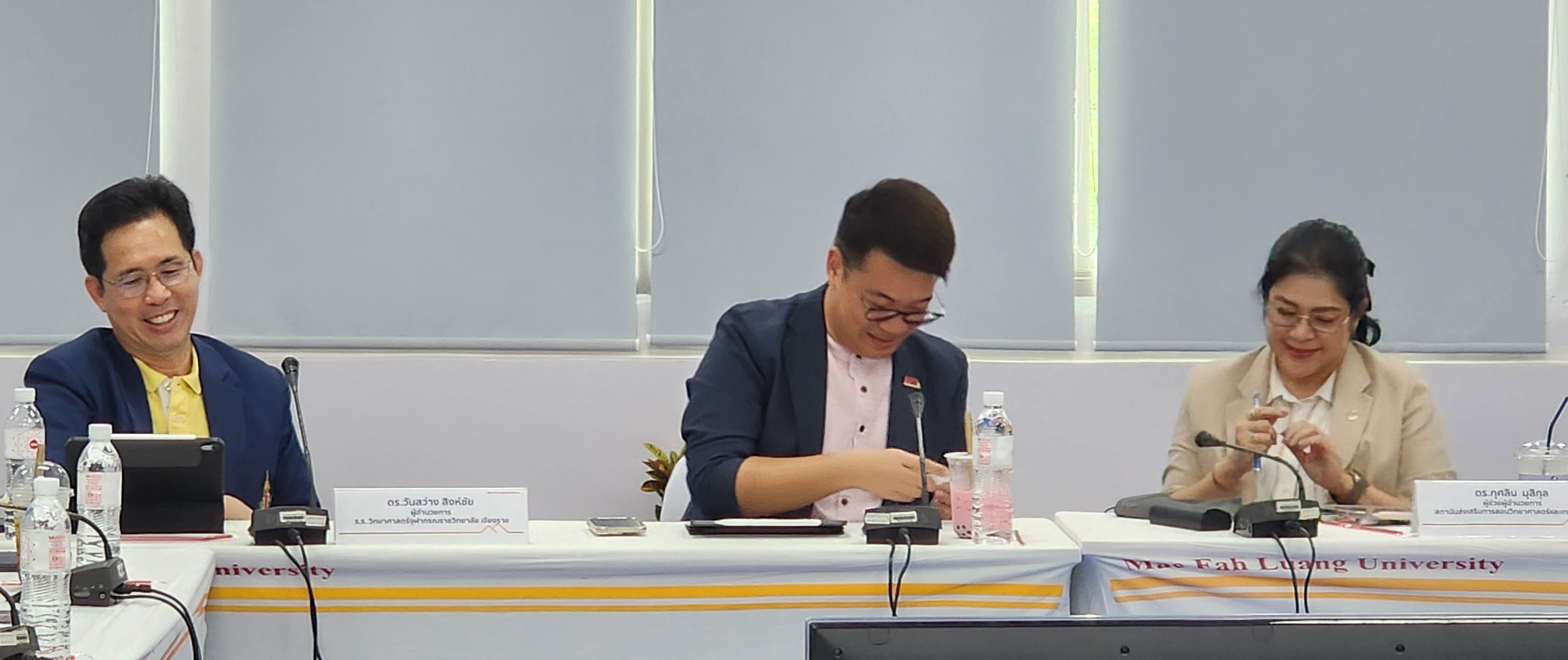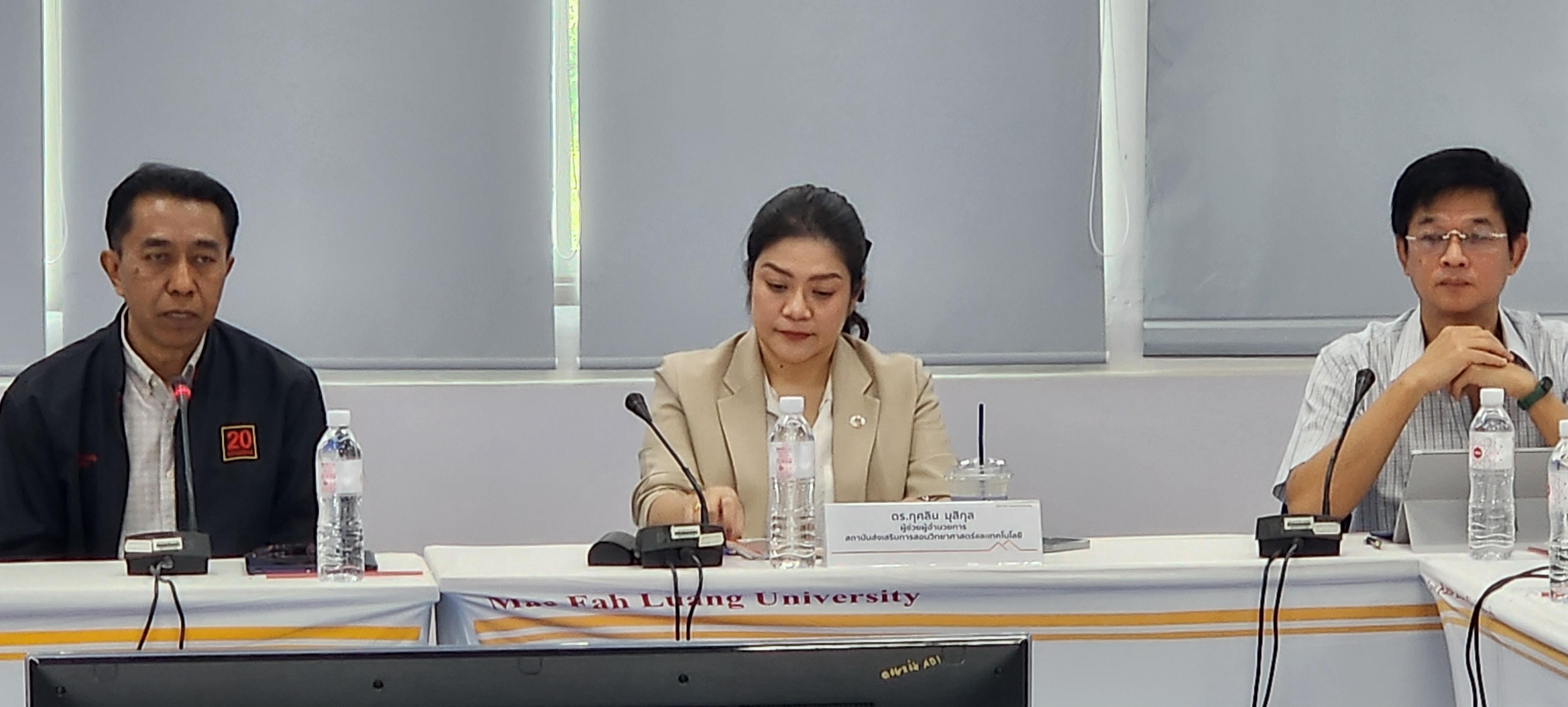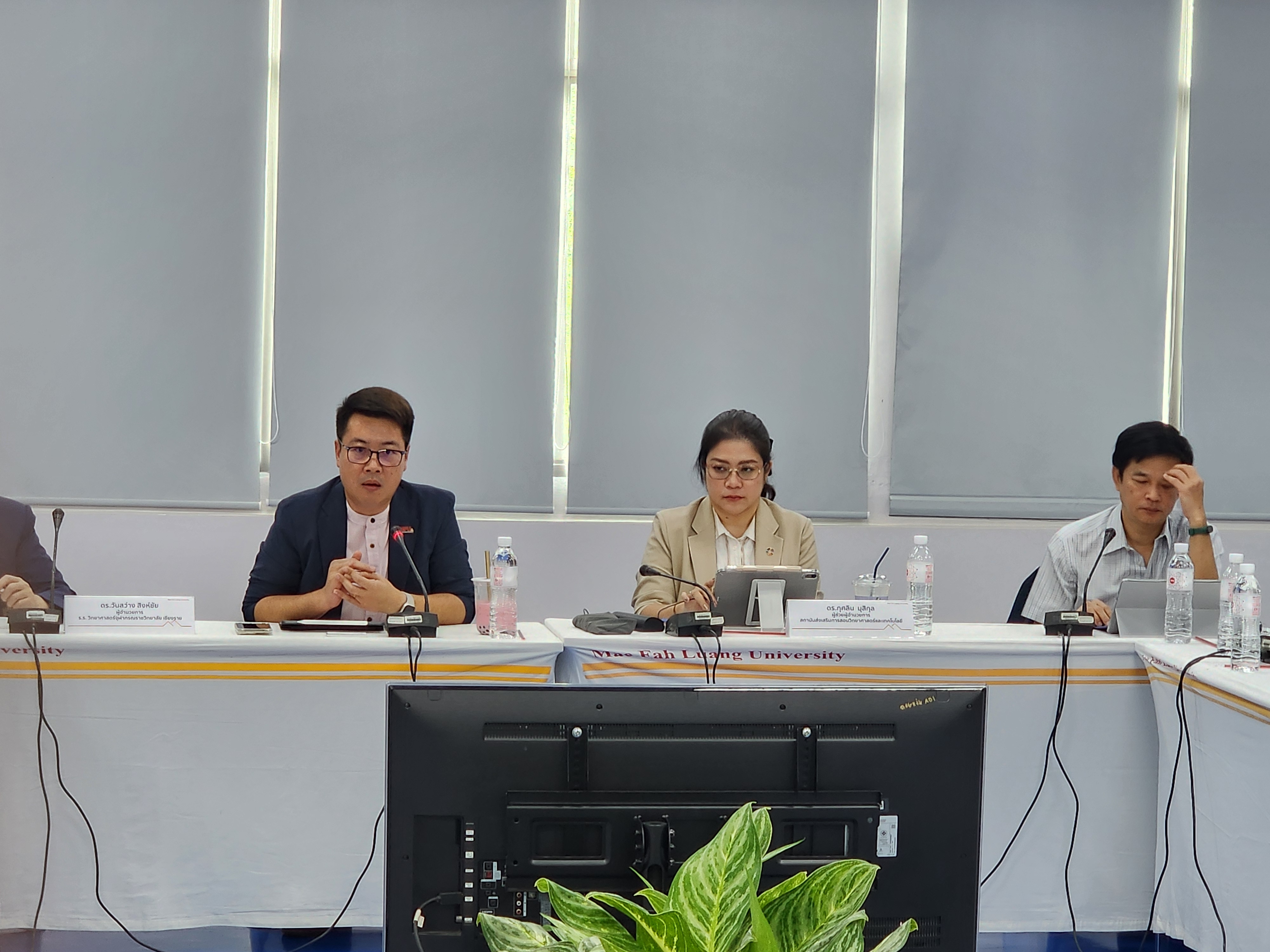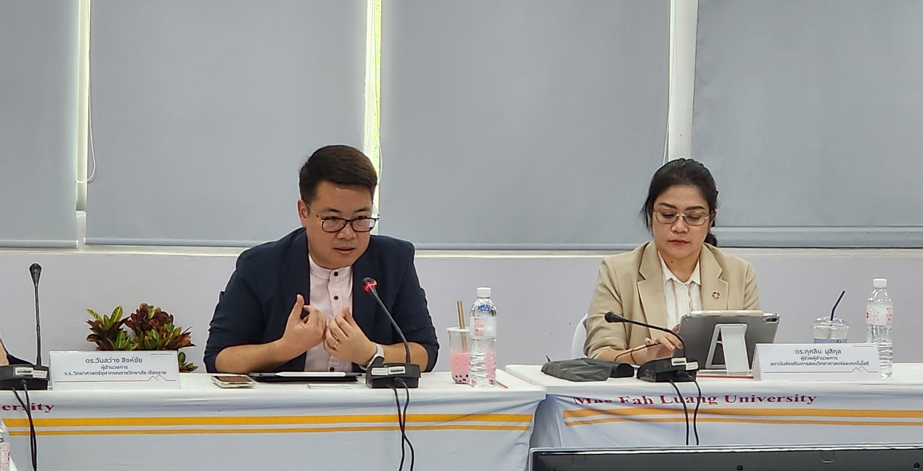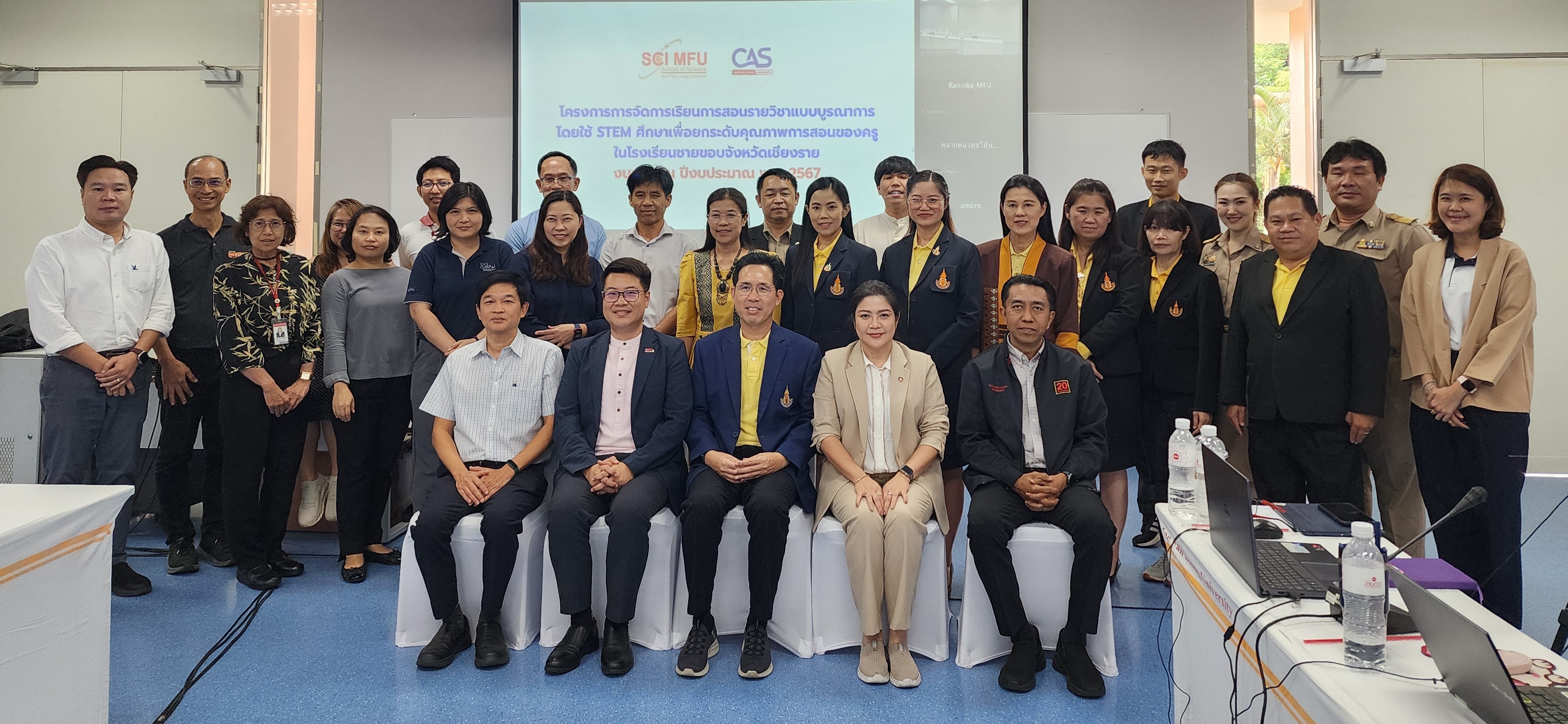 วันที่ 9 กรกฎาคม 2567 ศูนย์บริการวิชาการ นำโดย อาจารย์ ดร.ณัฐวุฒิ ยอดสุวรรณ ผู้อำนวยการ และนายสุชาติ รัตนโรม ผู้ช่วยผู้อำนวยการ ร่วมกับสำนักวิชาวิทยาศาสตร์ นำโดย ผู้ช่วยศาสตราจารย์ ดร.รุ่งโรจน์ นิลทอง ผู้ช่วยศาสตราจารย์ ดร.อุไรวรรณ อินต๊ะถา อาจารย์ ดร.พนม วิญญายอง อาจารย์ ดร.ต่อพันธ์ ทันดร และคณาจารย์ประจำสำนักวิชา ประชุมหารือแนวทางการบูรณาการ ความร่วมมือหน่วยงานพันธมิตรด้านการศึกษา เพื่อกำหนดแนวทางขับเคลื่อนโครงการ การจัดการเรียนการสอนรายวิชาแบบบูรณาการ โดยใช้ STEM ศึกษา เพื่อยกระดับคุณภาพการสอนของครูในโรงเรียนชายขอบจังหวัดเชียงราย ณ ห้องประชุม E4A 517 อาคารพลเอกสำเภา ชูศรี ซึ่งได้รับเกียรติจาก ดร. กุศลิน มุสิกุล ผู้ช่วยผู้อำนวยการ สถาบันส่งเสริมการสอนวิทยาศาสตร์และเทคโนโลยี และ ดร.วันสว่าง สิงห์ชัย ผู้อำนวยการโรงเรียนวิทยาศาสตร์จุฬาภรณราชวิทยาลัย เชียงราย ร่วมให้ข้อแนะนำ ข้อเสนอแนะ รวมถึงแลกเปลี่ยนแนวปฏิบัตที่ดี จากการดำเนินกระบวนการ STEM ศึกษา ที่ผ่านมา โดยได้รับความร่วมมือจากสำนักงานเขตพื้นที่การศึกษาประถมศึกษาเชียงราย เขต 2-4 เข้าร่วมประชุมและแลกเปลี่ยนองค์ความรู้ ทั้งนี้ โครงการ การจัดการเรียนการสอนรายวิชาแบบบูรณาการ โดยใช้ STEM ศึกษา เพื่อยกระดับคุณภาพการสอนของครูในโรงเรียนชายขอบจังหวัดเชียงราย เป็นโครงการที่ได้รับจัดสรรงบประมาณแผ่นดิน ให้ดำเนินการ ขับเคลื่อนการบรรลุเป้าหมายตามยุทธศาสตร์ชาติ ด้านการพัฒนาและเสริมสร้างศักยภาพทรัพยากรมนุษย์ ในมิติด้านการศึกษา สนองต่อการเปลี่ยนแปลงในศตวรรษที่ 21 โดยมีเป้าประสงค์ให้ครูได้แลกเปลี่ยนเรียนรู้กระบวนการจัดการเรียนการสอนรายวิชาแบบบูรณาการอย่างเกิดประสิทธิผล สู่การยกระดับคุณภาพการศึกษา ของโรงเรียนชายขอบพื้นที่จังหวัดเชียงราย สร้างครูผู้สอนให้พร้อมต่อการเปลี่ยนผ่านสู่การศึกษายุคใหม่ ก่อให้เกิดความเปลี่ยนแปลงต่อชั้นเรียนโดยตรง เน้นให้ผู้เรียนได้รับประโยชน์สูงสุด อันจะทำให้เกิดผลกระทบต่อการพัฒนาทรัพยากรมนุษย์ระดับชาติในท้ายที่สุดต่อไป