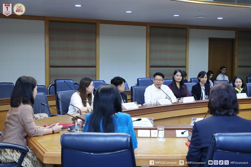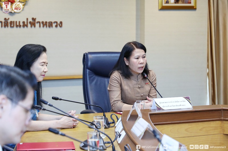 ผู้ช่วยศาสตราจารย์ ดร.มัชฌิมา นราดิศร อธิการบดีมหาวิทยาลัยแม่ฟ้าหลวง พร้อมด้วยศาสตราจารย์ ดร.สุจิตรา วงศ์เกษมจิตต์ รองอธิการบดี ให้การต้อนรับคณะนักวิจัยจากสถาบันเครือข่าย ซึ่งประกอบด้วย จุฬาลงกรณ์มหาวิทยาลัย มหาวิทยาลัยเชียงใหม่ มหาวิทยาลัยสงขลานครินทร์ มหาวิทยาลัยรังสิต มหาวิทยาลัยพะเยา มหาวิทยาลัยอุบลราชธานี มหาวิทยาลัยวลัยลักษณ์ และมหาวิทยาลัยแม่ฟ้าหลวง