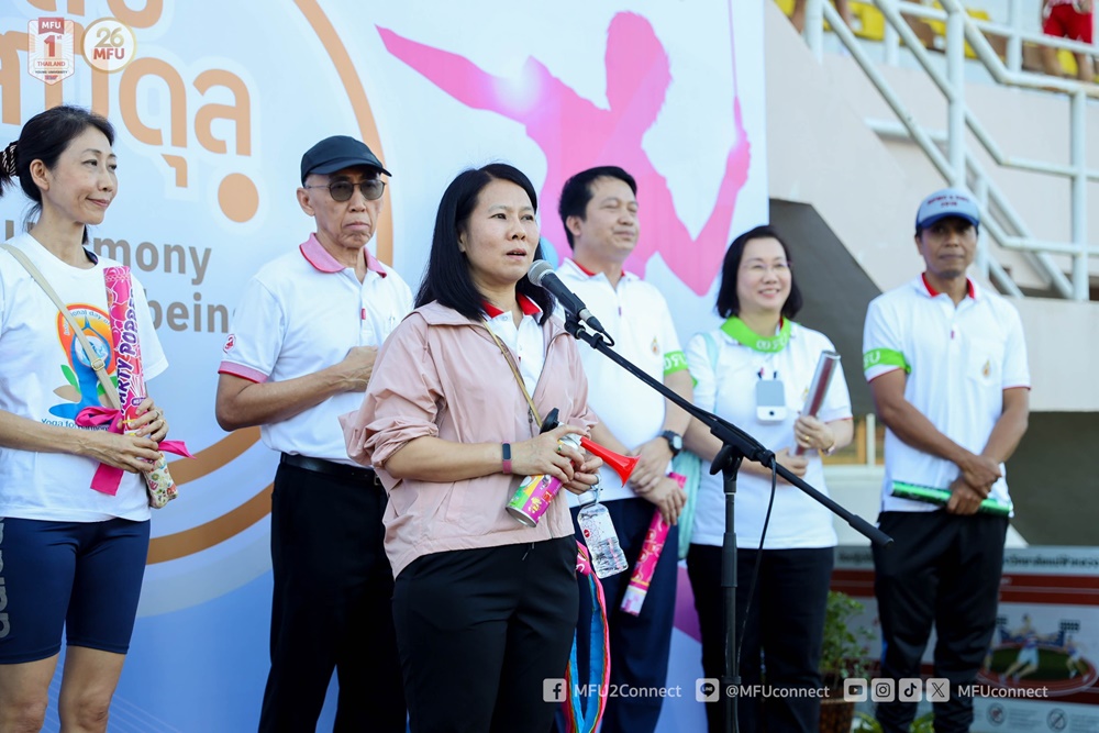 เมื่อวันที่ 1 พฤศจิกายน 2567 ผศ. ดร.มัชฌิมา นราดิศร อธิการบดีมหาวิทยาลัยแม่ฟ้าหลวง เป็นประธานเปิดกิจกรรมพนักงานสัมพันธ์ การแข่งขันกีฬาเพื่อเก็บคะแนนระหว่างกลุ่มสี ประจำปี พ.ศ.2567 และกิจกรรมเดิน-วิ่ง ร่วมกับอธิการบดี “WALK & RUN WITH THE PRESIDENT: อธิการชวนไปชมเขื่อน” ระยะทางรวม 6.6 กิโลเมตร โดยมี รศ. ดร.สยาม ภพลือชัย ประธานคณะทำงานจัดกิจกรรมพนักงานสัมพันธ์ ประจำปี 2567 กล่าวรายงานวัตถุประสงค์การจัดงาน