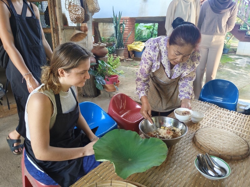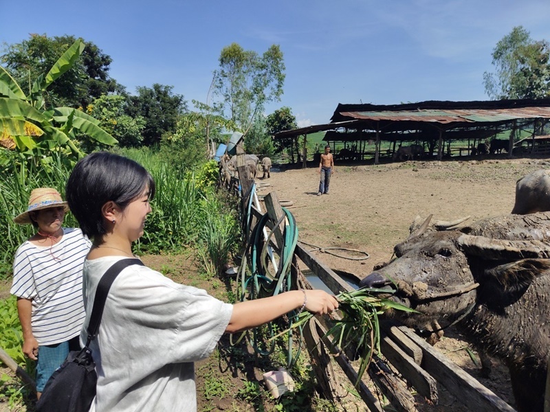 Ms. Pauline Enola Oceane Fraslin นักศึกษาจากประเทศฝรั่งเศส เล่าว่าประทับใจกับทัศนียภาพอันงดงามของหมู่บ้าน การได้ร่วมกิจกรรมให้อาหารควาย ทำงานหัตถกรรม และเยี่ยมชมวัด นอกจากนี้ยังได้ลิ้มลองอาหารพื้นถิ่น เช่น ยำผลไม้ วุ้นมะพร้าวอ่อน และเรียนรู้การห่ออาหารด้วยใบบัว ซึ่งทำให้ทริปครึ่งวันนี้เป็นประสบการณ์ที่น่าจดจำ