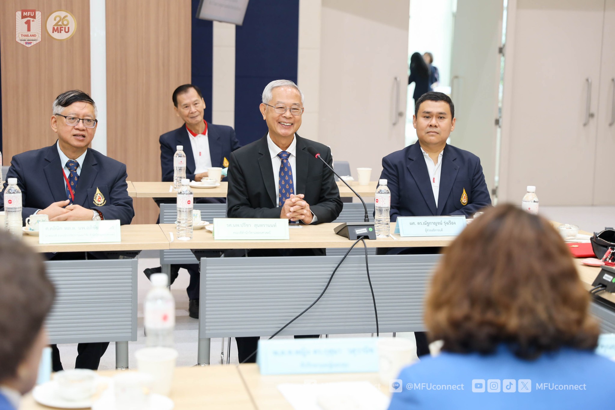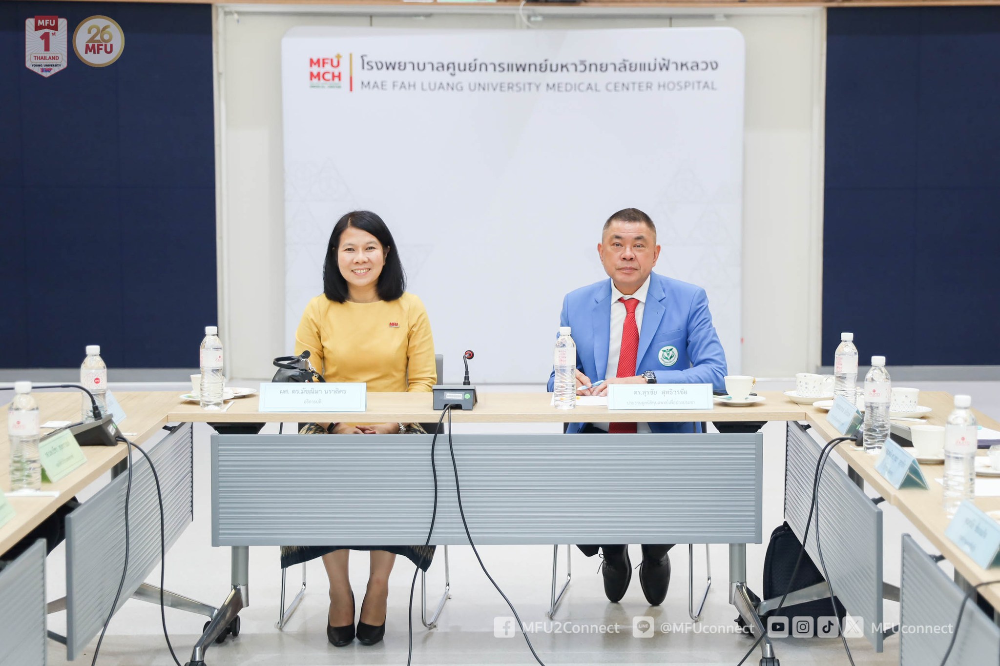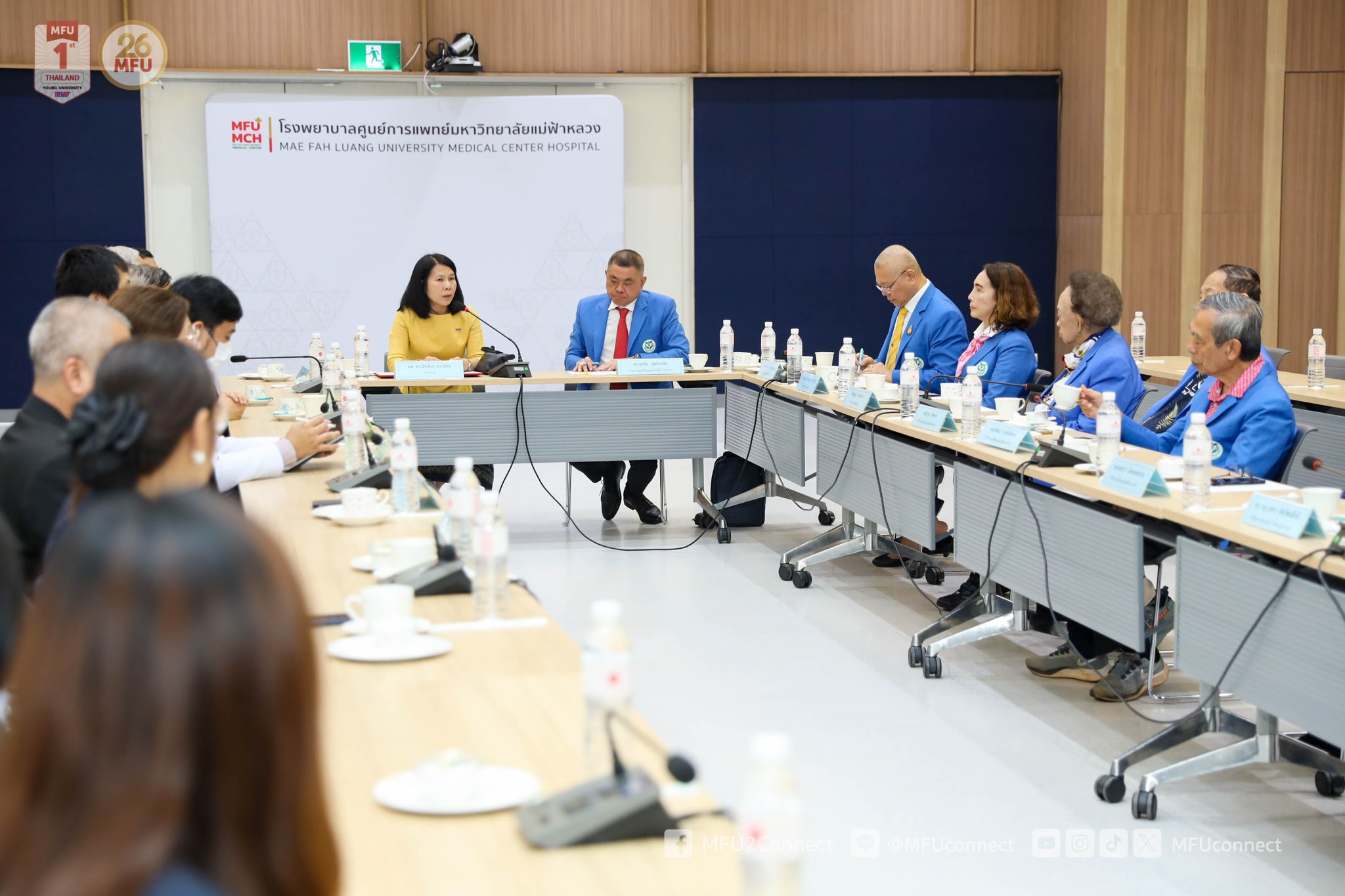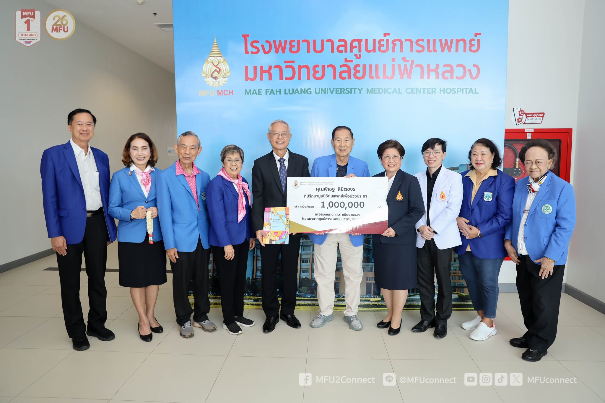 ในการนี้ ผศ. ดร.มัชฌิมา นราดิศร อธิการบดีมหาวิทยาลัยแม่ฟ้าหลวง รศ. นพ.ปรีชา สุนทรานันท์ คณบดีสำนักวิชาแพทยศาสตร์ ร่วมให้การต้อนรับคณะกรรมการมูลนิธิทุนแพทย์เพื่อปวงประชา นำโดย ดร.สุรชัย สุทธิวรชัย ประธานมูลนิธิทุนแพทย์เพื่อปวงประชา พร้อมด้วย คุณยุทธเมธากรณ์ อภิจิระโภคี กรรมการมูลนิธิ พ.ต.ท.หญิง ดร.กุสุมา วสุวานิช ที่ปรึกษามูลนิธิและผู้มอบทุน คุณสุนีย์ ชัยเจนกิจ กรรมการและเหรัญญิก คุณสุพัฒน์ ธนะพิงค์พงษ์ ที่ปรึกษามูลนิธิ คุณพิเชฐ ลิขิตขจร ที่ปรึกษามูลนิธิ ดร.ภญ.บุษกร เลิศวัฒนสีวลี หลักสูตร พปส.รุ่นที่ 1 นพ.สมเชาว์ ตันฑเทอดธรรม หลักสูตร พปส.รุ่นที่ 1 คุณณัฐบดี ญาณสิริกุล หลักสูตร พปส.รุ่นที่ 1 และคุณกำพล ภิญโญกุล ผู้มอบทุน ซึ่งในโอกาสนี้ คุณพิเชฐ ลิขิตขจร ที่ปรึกษามูลนิธิ ยังได้มอบเงินจำนวน 1,000,000 บาท เพื่อสมทบการดำเนินงานของโรงพยาบาลศูนย์การแพทย์มหาวิทยาลัยแม่ฟ้าหลวง รวมทั้งช่วยเหลือผู้ป่วยที่ยากไร้ต่อไป