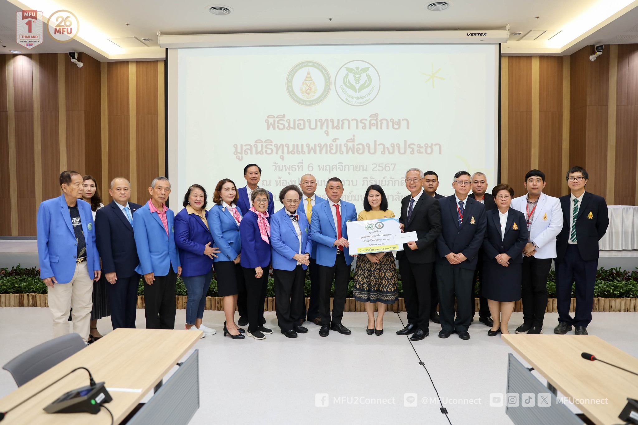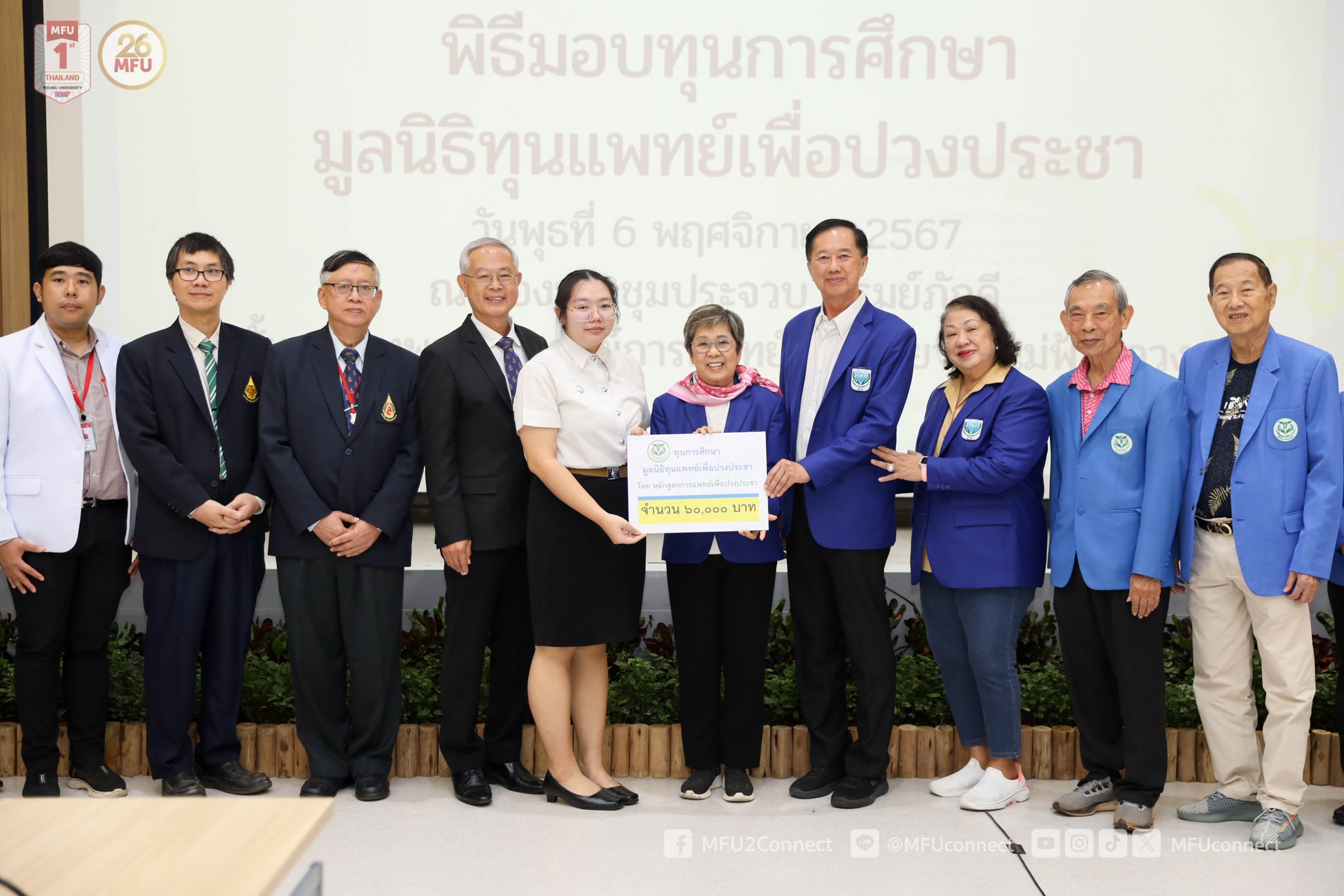 เมื่อวันพุธที่ 6 พฤศจิกายน 2567 มหาวิทยาลัยแม่ฟ้าหลวง (มฟล.) โดยสำนักวิชาแพทยศาสตร์ จัดพิธีมอบทุนการศึกษามูลนิธิทุนแพทย์เพื่อปวงประชา ประจำปีการศึกษา 2567 ณ ห้องประชุมประจวบ ภิรมย์ภักดี ชั้น 6 โรงพยาบาลศูนย์การแพทย์มหาวิทยาลัยแม่ฟ้าหลวง โดยทางมูลนิธิฯ มีความประสงค์มอบทุนการศึกษาให้แก่นักศึกษาแพทย์ สำนักวิชาแพทยศาสตร์ มหาวิทยาลัยแม่ฟ้าหลวง ที่มีผลการเรียนดีแต่ขาดแคลนทุนทรัพย์ จำนวนทุนละ 60,000 บาท ต่อปีการศึกษา ต่อเนื่องจนสำเร็จการศึกษาในชั้นปีที่ 6 ซึ่งในปีนี้มีนักศึกษาแพทย์ผู้ได้รับทุนรวมจำนวน 14 คน เป็นรายเก่าต่อเนื่องจำนวน 10 คน และรายใหม่จำนวน 4 คน รวมเป็นเงิน 840,000 บาท