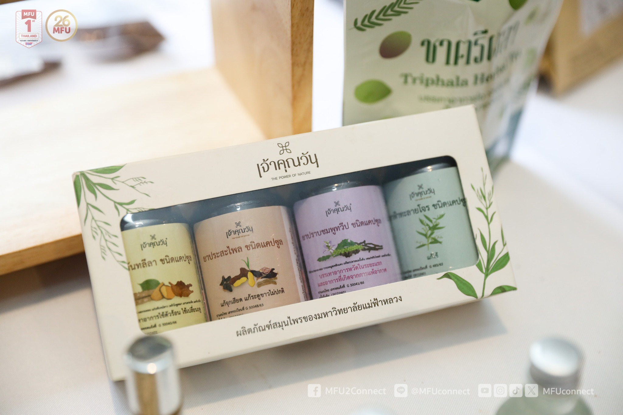 นอกจากนี้ยังมีการนำเสนอผลการดำเนินงานของ ศูนย์นวัตกรรมสมุนไพรครบวงจรมหาวิทยาลัยแม่ฟ้าหลวง ที่มุ่งเน้นส่งเสริมการวิจัยและพัฒนาพืชสมุนไพรแบบครบวงจร ตั้งแต่การคัดเลือกสายพันธุ์ การปลูกแบบเกษตรปลอดภัย การส่งเสริมเกษตรกร การค้นหาสารสำคัญที่ต่อยอดไปสู่การสร้างเป็นผลิตภัณฑ์ ด้วยความพร้อมทั้งห้องปฏิบัติการวิเคราะห์ทดสอบ โรงงานต้นแบบสกัดสมุนไพร ที่ได้รับการรับรองมาตรฐาน ทั้งห้องปฏิบัติการทางเคมี ห้องปฏิบัติการควบคุมคุณภาพวัตถุดิบสมุนไพร-ยาสำเร็จรูป และห้องปฏิบัติการเครื่องมือวิเคราะห์ โดยปัจจุบันมีผลิตต้นแบบที่จัดจำหน่ายโดยศูนย์หนังสือ M-Store ภายใต้ตราสินค้า เช่น เจ้าคุณวัน เป็นต้น