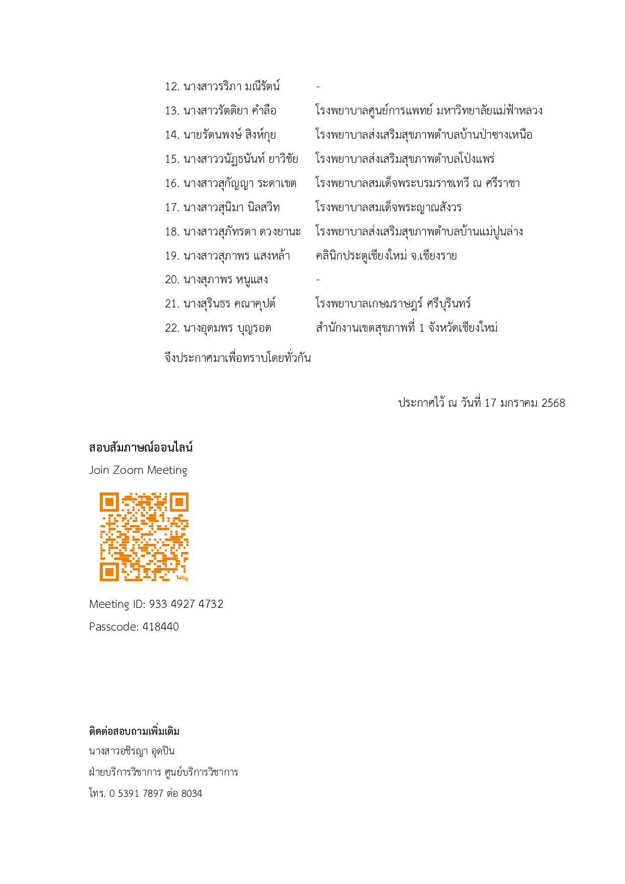 เวลา 09.00 – 12.00 น. ดังมีรายชื่อตามประกาศ