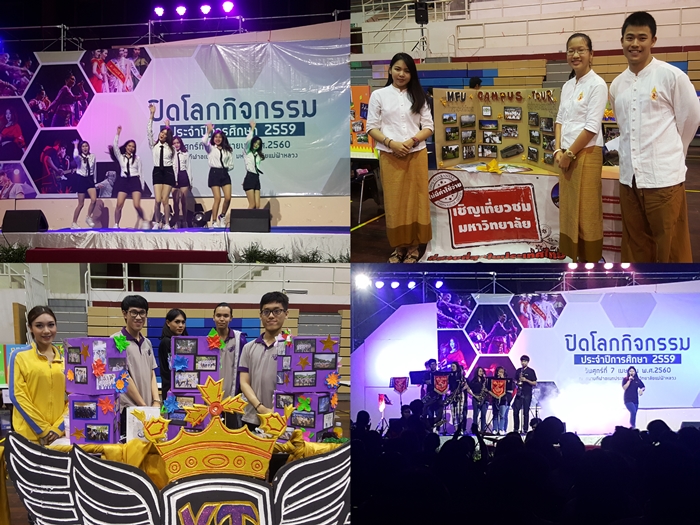 ส่วนพัฒนานักศึกษา มหาวิทยาลัยแม่ฟ้าหลวง (มฟล.) ร่วมกับ สภานักศึกษา, องค์การบริหาร องค์การนักศึกษา และ สโมสรนักศึกษา จัดกิจกรรม “ปิดโลกกิจกรรม ประจำปีการศึกษา 2559” เมื่อวันศุกร์ที่ 7 เมษายน 2560 ณ อาคารกีฬาเฉลิมพระเกียรติฯ เพื่อเป็นการจัดแสดงผลการดำเนินกิจกรรมและผลงานรางวัลของชมรมนักศึกษาต่างๆ กว่า 50 ชมรม ตลอดปีการศึกษาที่ผ่านมา อันเป็นสิ่งที่สะท้อนให้เห็นถึงศักยภาพในด้านต่างๆ ของเหล่านักศึกษา ซึ่งได้รับการสนับสนุนจากมหาวิทยาลัย ที่ต้องการส่งเสริมให้นักศึกษาได้มีโอกาสแสดงความสามารถในเชิงสร้างสรรค์ ผ่านกิจกรรมชมรมต่างๆ ตามความสนใจของแต่ละบุคคล