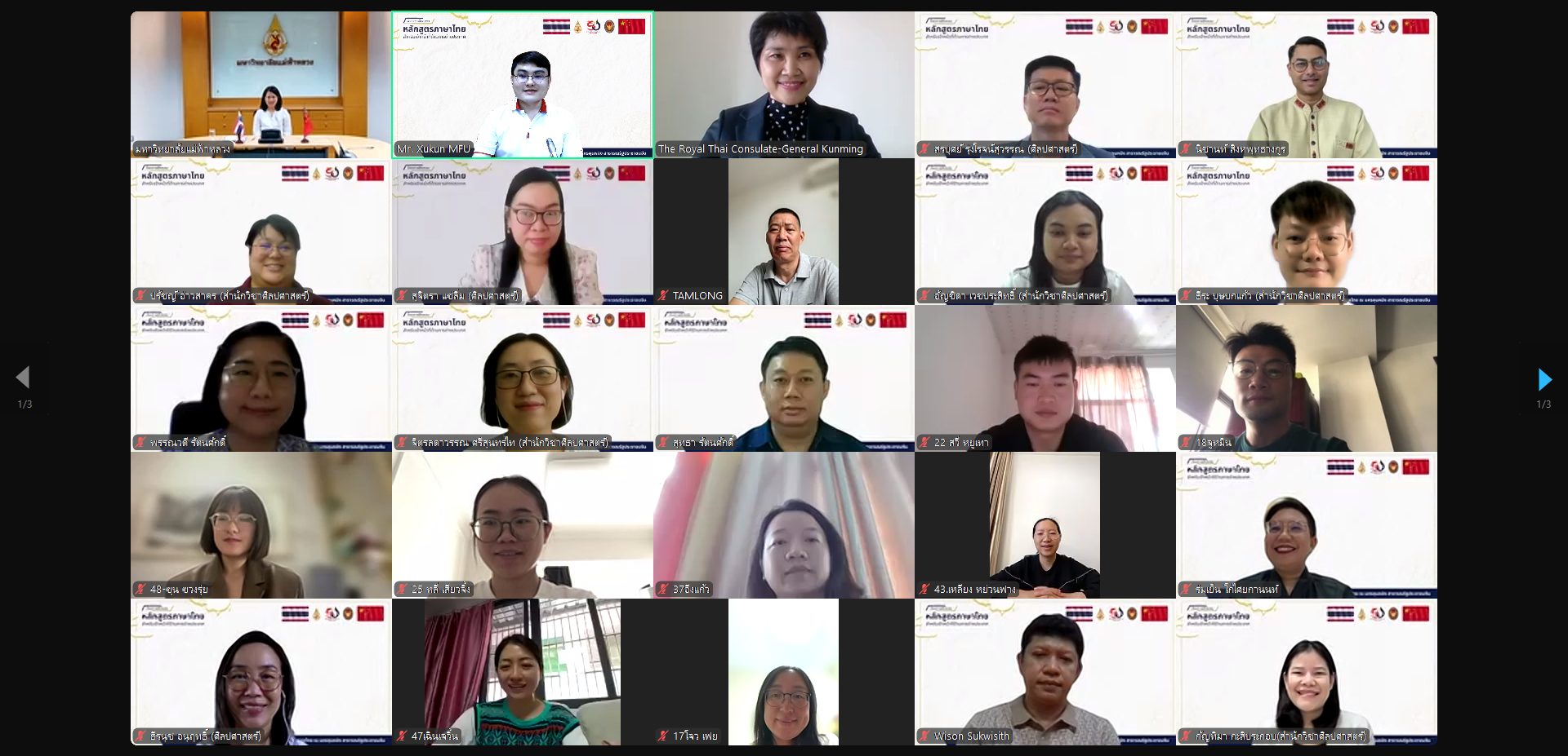 มหาวิทยาลัยแม่ฟ้าหลวง (มฟล.) ร่วมกับสถานกงสุลใหญ่ ณ นครคุนหมิง เปิดตัวหลักสูตรภาษาไทยออนไลน์สำหรับเจ้าหน้าที่ด้านการต่างประเทศของจีน เพื่อเสริมสร้างทักษะภาษาและความเข้าใจในวัฒนธรรมไทย สอดคล้องกับการเฉลิมฉลองครบรอบความสัมพันธ์ทางการทูตระหว่างไทยและจีน