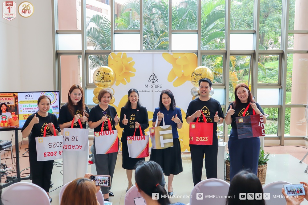 เมื่อวันที่ 6 มิถุนายน 2568 ศูนย์หนังสือ M-Store มหาวิทยาลัยแม่ฟ้าหลวง ได้จัดกิจกรรมเฉลิมฉลองครบรอบ 20 ปี “M-Store : 20 Years of Inspiring Minds” ณ โถงข้าง 7-11 ชั้น 2 อาคาร E-Park ตึก M-Square โดยมีเป้าหมายเพื่อประชาสัมพันธ์บทบาทและภารกิจของศูนย์หนังสือ พร้อมทั้งเปิดโอกาสให้เกิดการมีส่วนร่วมจากนักศึกษา บุคลากร หน่วยงานภายใน และภาคีเครือข่ายภายนอก