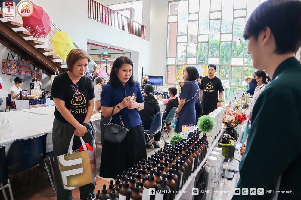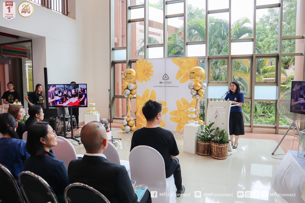 ทั้งนี้ ผู้ช่วยศาสตราจารย์ ดร.มัชฌิมา นราดิศร อธิการบดีมาร่วมเปิดงานอย่างเป็นทางการ โดยกล่าวว่า ศูนย์หนังสือมหาวิทยาลัยแม่ฟ้าหลวง ได้เติบโตมาตามลำดับจวบจนวันนี้ครบรอบ 20 ปี จากการขายหนังสือ เครื่องเขียน ของใช้ จนวันนี้ได้เป็นแหล่งจำหน่ายสินค้าที่มาจากผลงานวิจัยของเหล่าคณาจารย์ นักวิจัยมหาวิทยาลัยแม่ฟ้าหลวง ส่งเสริมทำนุบำรุงศิลปวัฒนธรรมรวมทั้งเผยแพร่ให้สังคมได้รู้จัก นับเป็นการเพิ่มมูลค่าทุนทางวัฒนธรรมของชาวเหนือ