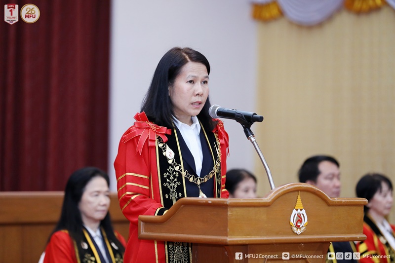 ด้าน ผู้ช่วยศาสตราจารย์ ดร.มัชฌิมา นราดิศร อธิการบดี กล่าวแสดงความยินดีและให้ข้อคิดแก่บัณฑิตว่า การได้รับปริญญาเป็นรางวัลแห่งความเพียรพยายามและเป็นการแสดงถึงองค์ความรู้และทักษะประสบการณ์ที่สั่งสมมา พร้อมเน้นย้ำว่านอกจาก Hard skill ในวิชาชีพแล้ว บัณฑิตควรให้ความสำคัญกับ Soft skill เช่น ความมุ่งมั่น ความต่อเนื่อง ไม่ย่อท้อ การควบคุมอารมณ์ในสถานการณ์ที่บีบคั้น "คนที่ก้าวถึงเส้นชัยและยืนหยัดอย่างมั่นคงไม่ใช่คนที่แข็งแกร่งที่สุดแต่คือคนที่ไม่ย่อท้อแม้จะอยู่ในภาวะที่บีบคั้นรอบด้าน" และฝากข้อคิดว่า "ปัญหามีไว้แก้ไขและอุปสรรคมีไว้ให้ก้าวข้าม"