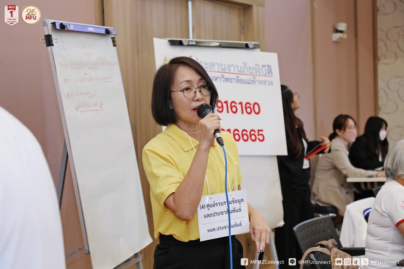 มหาวิทยาลัยแม่ฟ้าหลวงร่วมจังหวัดเชียงราย เสริมสร้างความพร้อมในการรับมือภัยพิบัติ โดยจัดประชุมเชิงปฏิบัติการซ้อมแผนภัยพิบัติน้ำท่วมร่วมกันตามมาตรฐานระบบบัญชาการเหตุการณ์ฉุกเฉิน (Incident Command System: ICS) ในวันจันทร์ที่ 9 มิถุนายน 2568 เวลา 13.30-16.00 น. ณ ห้องคำมอกหลวง ชั้น 5 ตึก E-Park อาคาร M-Square โดยมีผู้ช่วยศาสตราจารย์ ดร.มัชฌิมา นราดิศร อธิการบดี เป็นประธาน พร้อมด้วยทีมผู้บริหารและเจ้าหน้าที่ที่เกี่ยวข้อง ร่วมกับหลายภาคส่วนของจังหวัดเชียงราย เพื่อสร้างเครือข่ายความร่วมมือที่แข็งแกร่งยิ่งขึ้นในการรับมือสถานการณ์ภัยพิบัติในระดับพื้นที่