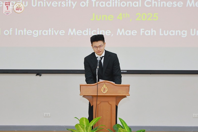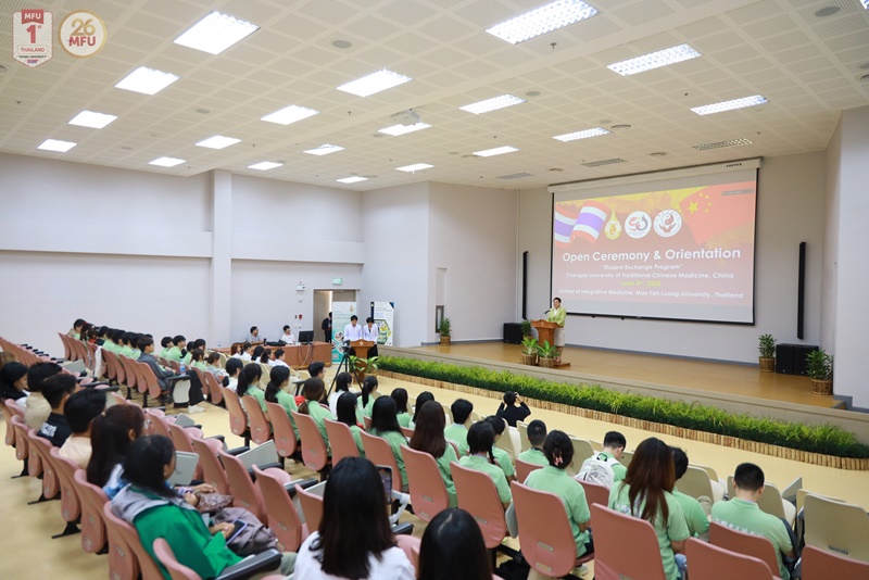 สำนักวิชาการแพทย์บูรณาการ มหาวิทยาลัยแม่ฟ้าหลวง เปิดโครงการแลกเปลี่ยนนักศึกษากับมหาวิทยาลัยแพทย์แผนจีนเฉิงตู สาธารณรัฐประชาชนจีน พร้อมจัดกิจกรรมปฐมนิเทศนักศึกษาต่างชาติหลักสูตรระยะสั้น และเฉลิมฉลองครบรอบ 50 ปีความสัมพันธ์ไทย-จีน เมื่อวันที่ 4 มิถุนายน 2568 ณ ห้องประชุมประดู่แดง 1 อาคารพลเอกสำเภาชูศรี (E4) โดยมี ผศ.ดร.ร่มเย็น โกไศยกานนท์ รองอธิการบดี พร้อมด้วย ดร.พญ.สุลัคณา น้อยประเสริฐ คณบดีสำนักวิชาการแพทย์บูรณาการ และผู้บริหารมหาวิทยาลัย ร่วมเปิดกิจกรรมและต้อนรับนักศึกษาแลกเปลี่ยนจากประเทศจีน