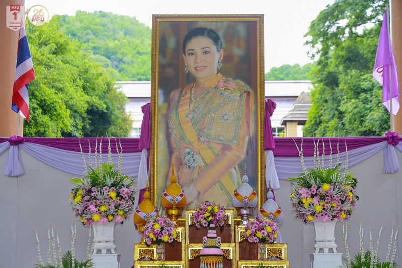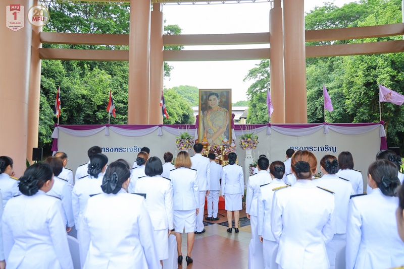 ผศ.ดร.ภาณุพงษ์ ใจวุฒิ รองอธิการบดีมหาวิทยาลัยแม่ฟ้าหลวง เป็นประธานในพิธี พร้อมด้วยผู้บริหาร พนักงาน และนักศึกษา ได้ร่วมกันแสดงความจงรักภักดีและถวายพระพรชัยมงคลแด่พระองค์ท่าน พิธีดำเนินไปตามลำดับ รองอธิการบดีประธานในพิธีเปิดกรวยกระทงดอกไม้ธูปเทียนแพหน้าพระฉายาลักษณ์สมเด็จพระนางเจ้าฯ พระบรมราชินี ตามด้วยพิธีกล่าวคำถวายพระพรชัยมงคล และการขับร้องเพลงสรรเสริญพระบารมี