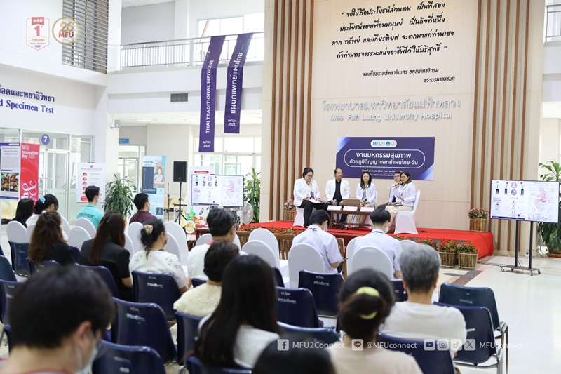 โรงพยาบาลมหาวิทยาลัยแม่ฟ้าหลวง จังหวัดเชียงราย จัดงาน "มหกรรมสุขภาพด้วยภูมิปัญญาแพทย์แผนไทย-จีน" ในวันพุธที่ 26 มีนาคม 2568 ตั้งแต่เวลา 08.00-16.00 น. ณ ห้องโถง ชั้น 1 ของโรงพยาบาล โดยมี อาจารย์ ดร.พญ.สุลัคณา น้อยประเสริฐ คณบดีสำนักวิชาการแพทย์บูรณาการและรักษาการแทนผู้อำนวยการโรงพยาบาลมหาวิทยาลัยแม่ฟ้าหลวง เป็นประธานเปิดงาน มีผู้สนใจเข้าร่วมงานอย่างล้มหลามจากชุมชนโดยรอบมหาวิทยาลัย
