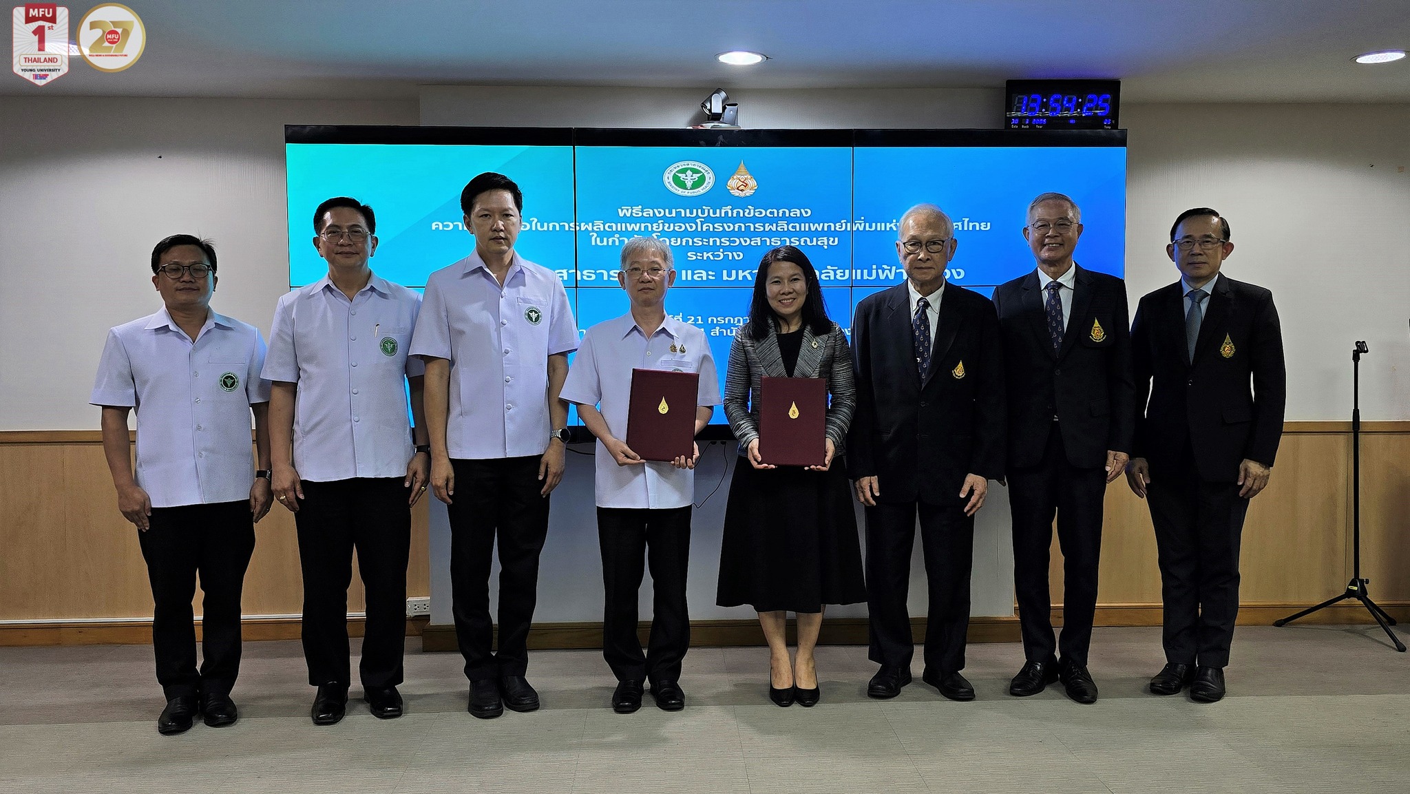 เมื่อวันที่ 21 กรกฎาคม 2568 ณ ห้องประชุมการบูร อาคาร 1 ชั้น 3 สำนักงานปลัดกระทรวงสาธารณสุข ได้จัดพิธีลงนามบันทึกข้อตกลงความร่วมมือในการผลิตแพทย์ของ “โครงการผลิตแพทย์เพิ่มแห่งประเทศไทยในกำกับโดยกระทรวงสาธารณสุข” ระหว่าง กระทรวงสาธารณสุข และมหาวิทยาลัยแม่ฟ้าหลวง เพื่อขยายขีดความสามารถในการผลิตบุคลากรทางการแพทย์ที่มีคุณภาพ มีคุณธรรม และสามารถตอบโจทย์ความขาดแคลนแพทย์ในเขตพื้นที่ห่างไกล โดยเฉพาะในภาคเหนือของประเทศ โดยมีศูนย์แพทยศาสตรศึกษาชั้นคลินิก โรงพยาบาลน่าน เป็นแหล่งจัดการเรียนการสอนประสบการณ์ควบคู่วิชาการในชั้นปีที่ 4 - 6 เริ่มรับนักศึกษาแพทย์ ปีการศึกษา 2570 เป็นปีแรก จำนวน 20 คน