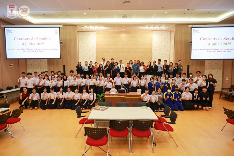 โครงการจัดตั้งหน่วยความร่วมมือทางวิชาการฝรั่งเศส-อนุภูมิภาคลุ่มแม่น้ำโขง มหาวิทยาลัยแม่ฟ้าหลวง จัดกิจกรรมเฉลิมฉลองวันชาติฝรั่งเศสและกิจกรรมแข่งขันสแคร็บเบิลภาษาฝรั่งเศส ประจำปี 2568 ในวันศุกร์ที่ 4 กรกฎาคม 2568 เวลา 08.30-16.00 น. ณ ห้องคำมอกหลวง อาคาร E-Park ชั้น 5 อาคารศูนย์ปฏิบัติการเพื่อพัฒนาการเรียนรู้ (M-Square) มหาวิทยาลัยแม่ฟ้าหลวง มีผศ.ดร.ร่มเย็น โกไศยกานนท์ รองธิการบดี เป็นประธานเปิดกิจกรรม