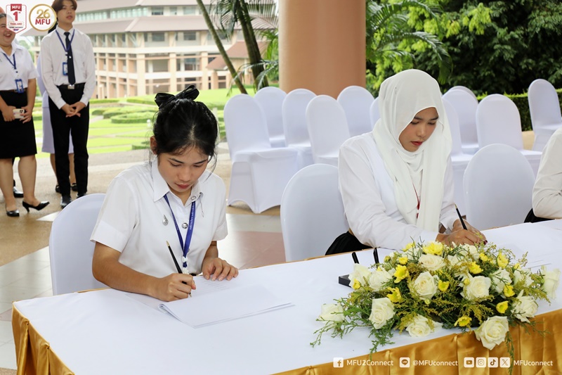 วันนี้ (25 กรกฎาคม 2568) มหาวิทยาลัยแม่ฟ้าหลวง จัดพิธีลงนามถวายพระพรชัยมงคล และพิธีถวายสัตย์ปฏิญาณเพื่อเป็นพนักงานของรัฐที่ดีและพลังของแผ่นดิน เนื่องในโอกาสวันเฉลิมพระชนมพรรษาพระบาทสมเด็จพระเจ้าอยู่หัว 28 กรกฎาคม 2568