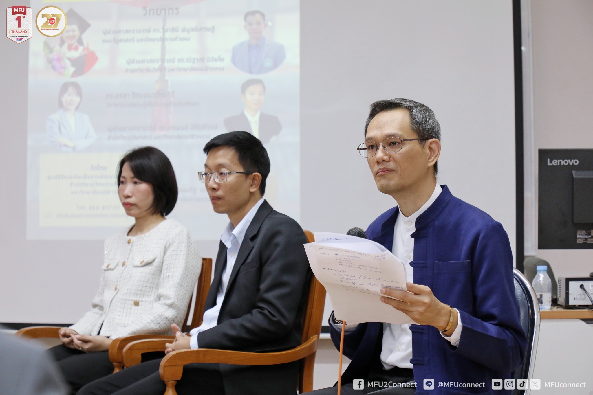 เมื่อวันที่ 1 กันยายน 2568 ศูนย์วิจัยเอเชียเพื่อการพัฒนาระหว่างประเทศ สำนักวิชานวัตกรรมสังคม มหาวิทยาลัยแม่ฟ้าหลวง (มฟล.) จัดกิจกรรมเสวนาวิชาการเรื่อง “มุมมองสหวิทยาการกับพลวัตรของจีนและบทบาทในการเป็นหุ้นส่วนเพื่อการพัฒนาในเวทีโลก” ณ ห้อง E4 608 อาคารพลเอกสำเภา ชูศรี (E4) โดยมีคณาจารย์ นักศึกษา และผู้สนใจเข้าร่วม กิจกรรมครั้งนี้จัดขึ้นเพื่อเฉลิมฉลองในโอกาสครบรอบ 50 ปี การสถาปนาความสัมพันธ์ทางการทูตระหว่างไทยและจีน