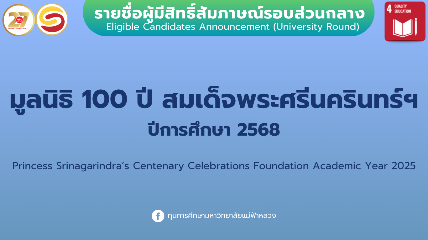 มูลนิธิ 100 ปี สมเด็จพระศรีนครินทร์ ปีการศึกษา 2568 รอบส่วนกลาง