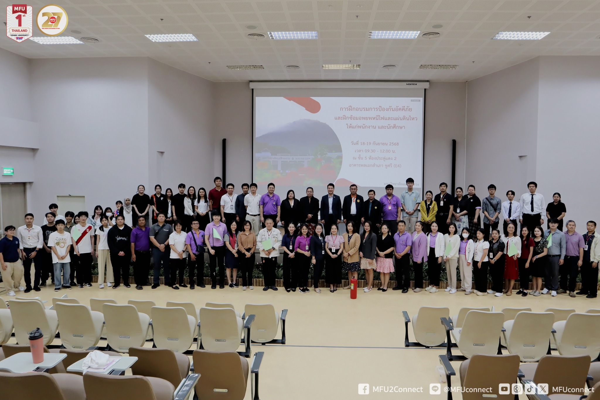 มหาวิทยาลัยแม่ฟ้าหลวง ได้จัดการอบรมเชิงปฏิบัติการเรื่อง การป้องกันอัคคีภัยและฝึกซ้อมอพยพหนีไฟและแผ่นดินไหว ให้แก่พนักงานและนักศึกษา ระหว่างวันที่ 18 – 19 กันยายน 2568 ณ ห้องประดู่แดง 2 อาคารพลเอกสำเภา ชูศรี (E4) โดยมี อาจารย์ ดร.ณัฐวุฒิ ยอดสุวรรณ รองอธิการบดี เป็นประธานเปิดงาน พร้อมด้วยผู้เข้าร่วมอบรมทั้งบุคลากรและนักศึกษา