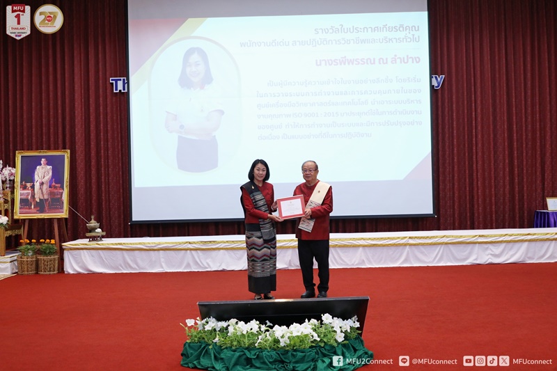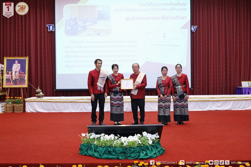 มหาวิทยาลัยแม่ฟ้าหลวง (มฟล.) จัดพิธีมอบโล่และประกาศเกียรติคุณ เนื่องในโอกาสครบรอบ 27 ปีแห่งการสถาปนามหาวิทยาลัย โดยมีศาสตราจารย์พิเศษ ดร.วันชัย ศิริชนะ นายกสภามหาวิทยาลัยแม่ฟ้าหลวง เป็นประธานในพิธี เมื่อวันที่ 25 กันยายน 2568 ที่หอประชุมสมเด็จย่า