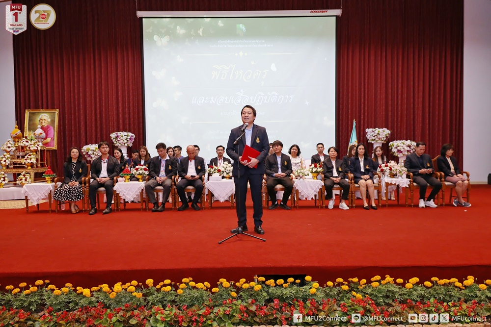 วันศุกร์ที่ 24 ตุลาคม 2568 สำนักวิชาวิทยาศาสตร์สุขภาพ มหาวิทยาลัยแม่ฟ้าหลวง จัดพิธีไหว้ครูและพิธีมอบเสื้อปฏิบัติงาน ประจำปีการศึกษา 2568 ณ หอประชุมสมเด็จย่า (C4) เพื่อเป็นการแสดงความกตัญญูกตเวทีต่อครูอาจารย์ และเป็นการปลูกฝังจิตสำนึกแห่งความรับผิดชอบในวิชาชีพของนักศึกษาสาขาวิชาด้านสุขภาพทุกคน