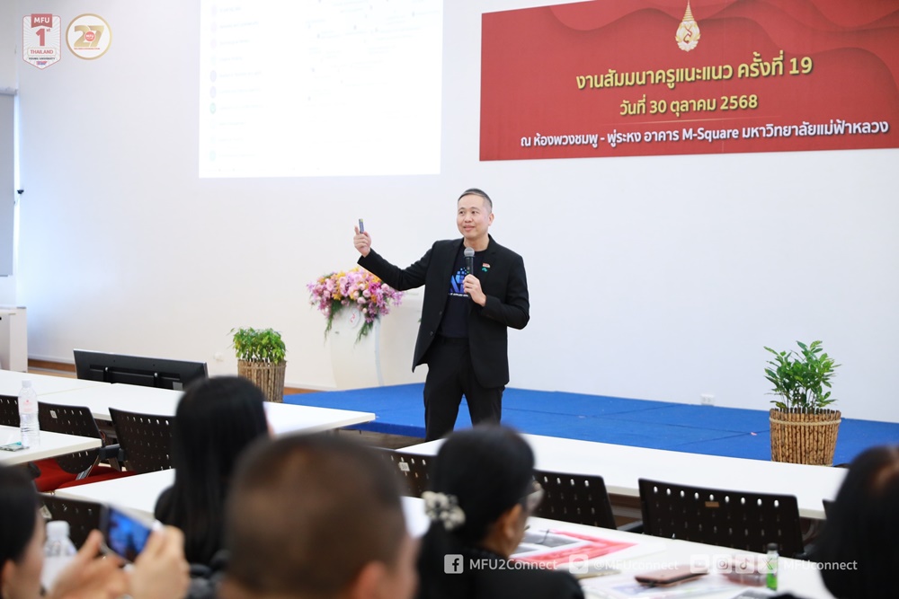 เมื่อวันที่ 30 ตุลาคม 2568 มหาวิทยาลัยแม่ฟ้าหลวง (มฟล.) โดยฝ่ายรับนักศึกษา ส่วนทะเบียนและประมวลผล จัดงานสัมมนาครูแนะแนว ครั้งที่ 19 ณ ห้องพวงชมพูและห้องพู่ระหง อาคาร M-Square เพื่อประชาสัมพันธ์ข้อมูลหลักสูตรการศึกษา การรับนักศึกษา และสร้างเครือข่ายความร่วมมือระหว่างมหาวิทยาลัยกับโรงเรียนทั่วประเทศ โดยมีครูแนะแนวจำนวน 127 คน จาก 87 โรงเรียน 34 จังหวัด เข้าร่วมอย่างคับคั่ง