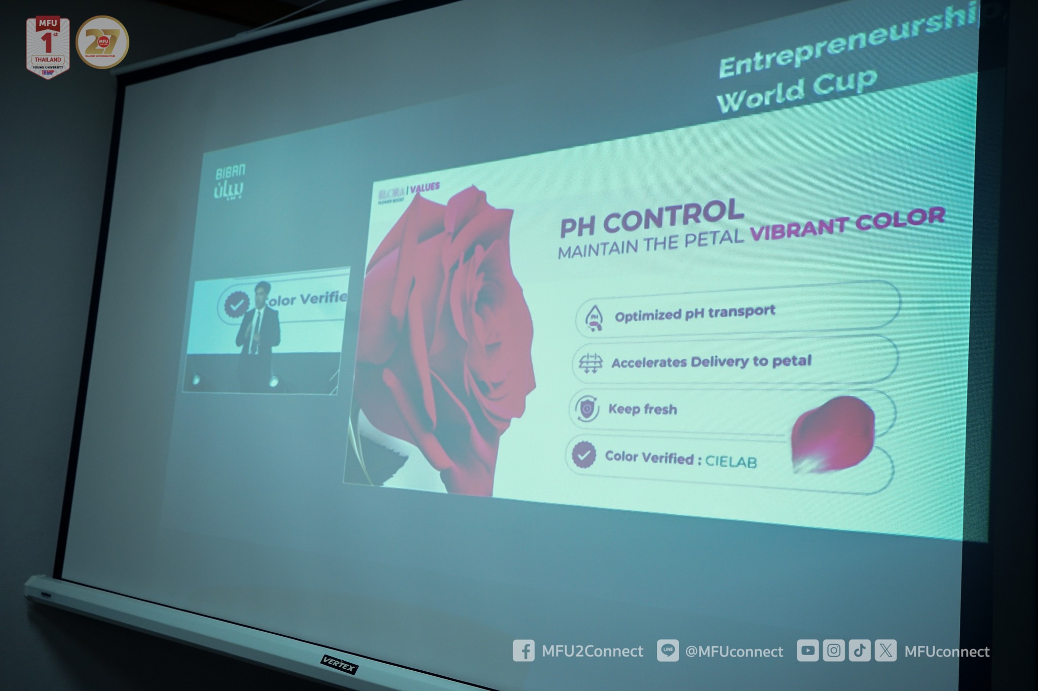 ทีม “KLORA”เข้าร่วมการแข่งขัน Startup Thailand League 2025 ระดับประเทศ ซึ่งทีมคว้ารางวัล ชนะเลิศอันดับ 1 พร้อมเงินรางวัล 50,000 บาท จากผลงาน “เม็ดฟู่ยืดอายุดอกไม้” ซึ่งส่งผลให้มหาวิทยาลัยแม่ฟ้าหลวงได้รับรางวัล University of the Year จากโครงการดังกล่าว ทั้งนี้การเข้าร่วมแข่งขันได้รับการสนับสนุนจากส่วนจัดการทรัพย์สินทางปัญญาและนวัตกรรม (MFii)