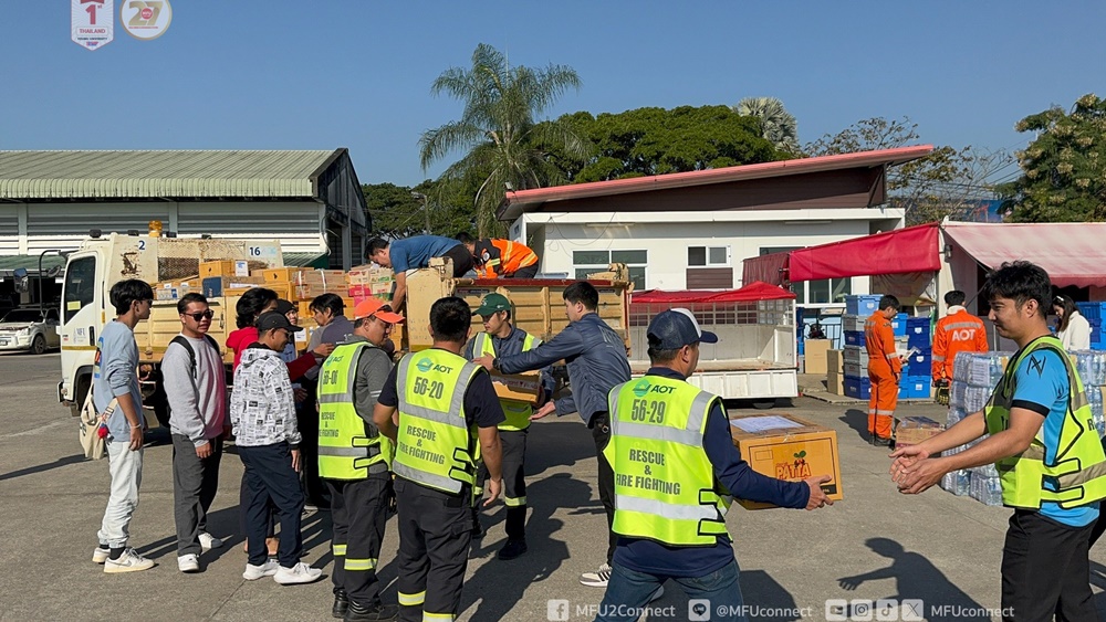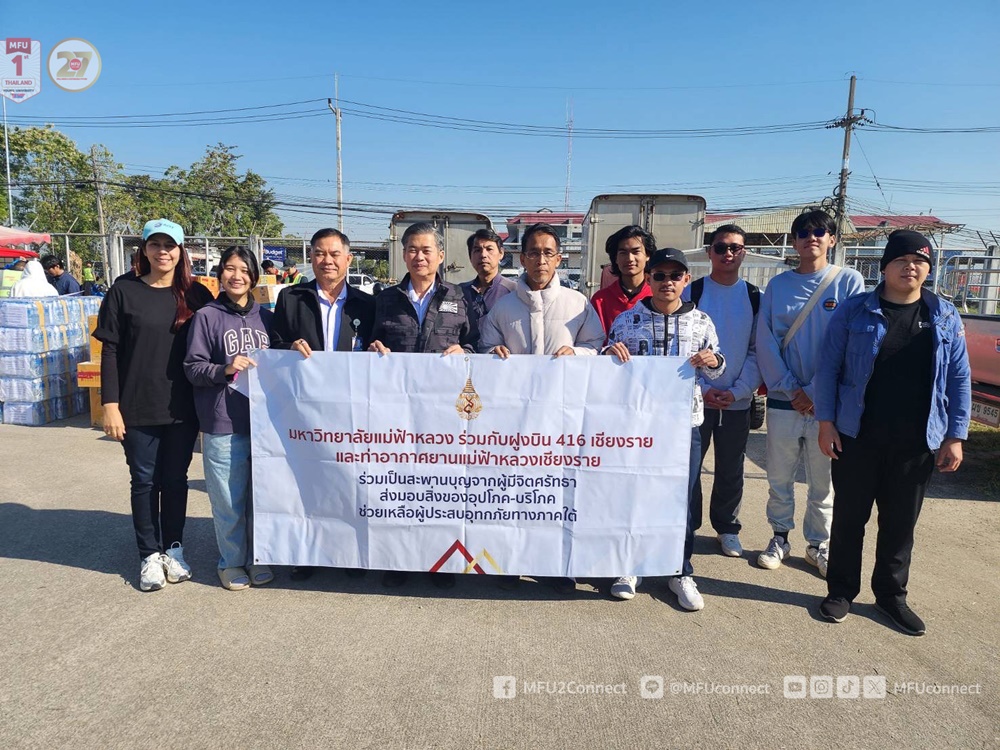 เมื่อวันที่ 30 พฤศจิกายน 2568 มหาวิทยาลัยแม่ฟ้าหลวง เดินทางไปมอบสิ่งของที่ได้รับบริจาคเพื่อบรรเทาความเดือดร้อนผู้ประสบอุทกภัยน้ำท่วมในพื้นที่ภาคใต้ ณ ท่าอากาศยานแม่ฟ้าหลวง เชียงราย จำนวน 43 กล่อง น้ำหนักรวม 501.27 กิโลกรัม โดยมี ดร.สิทธิปัฐพ์ มงคลอภิบาลกุล รองผู้อำนวยการท่าอากาศยานแม่ฟ้าหลวง เชียงราย (ด้านปฏิบัติการและบำรุงรักษา) รับมอบ