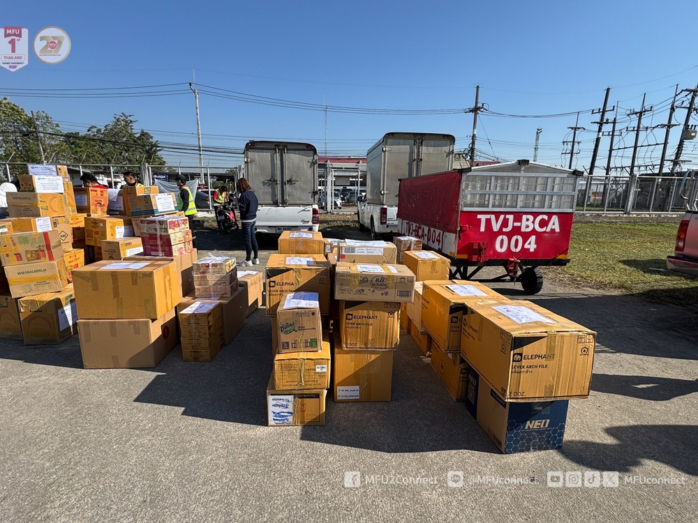 มหาวิทยาลัยแม่ฟ้าหลวง ร่วมเป็นสะพานบุญส่งต่อสิ่งของบริจาคจำนวน 94 กล่อง น้ำหนักรวม 1,127.92 กิโลกรัม