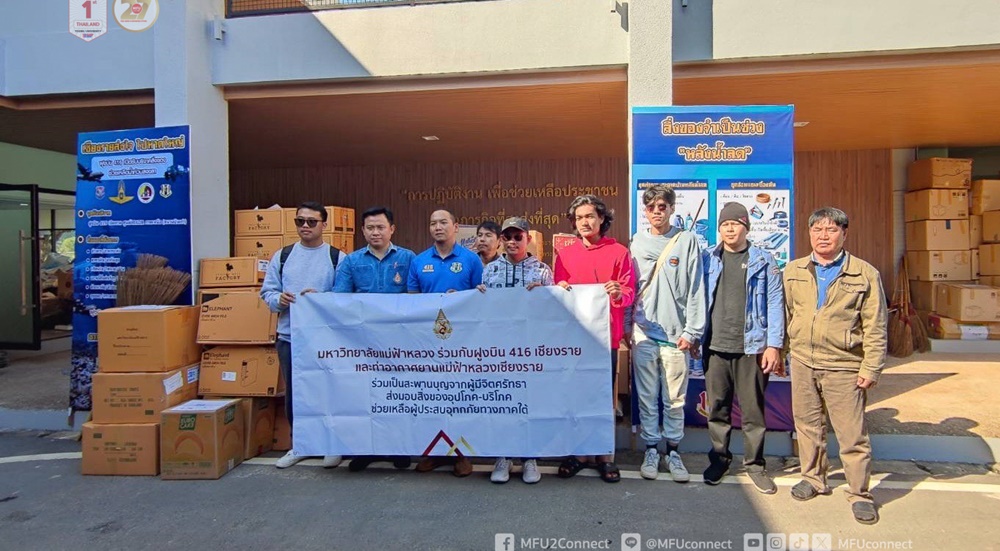 นอกจากนี้ มหาวิทยาลัยแม่ฟ้าหลวงได้เดินทางไปมอบ สิ่งของร่วมบริจาค ณ ฝูงบิน 416 เชียงราย จำนวน 51 กล่อง น้ำหนักรวม 626.65 กิโลกรัม