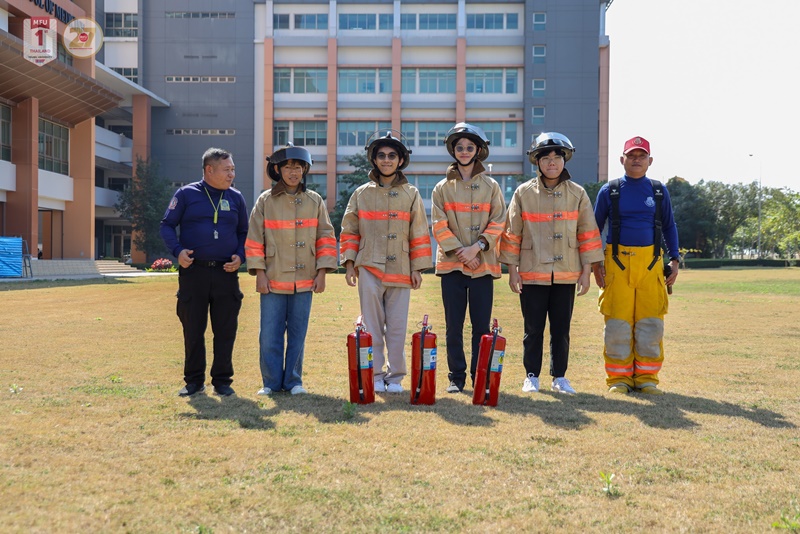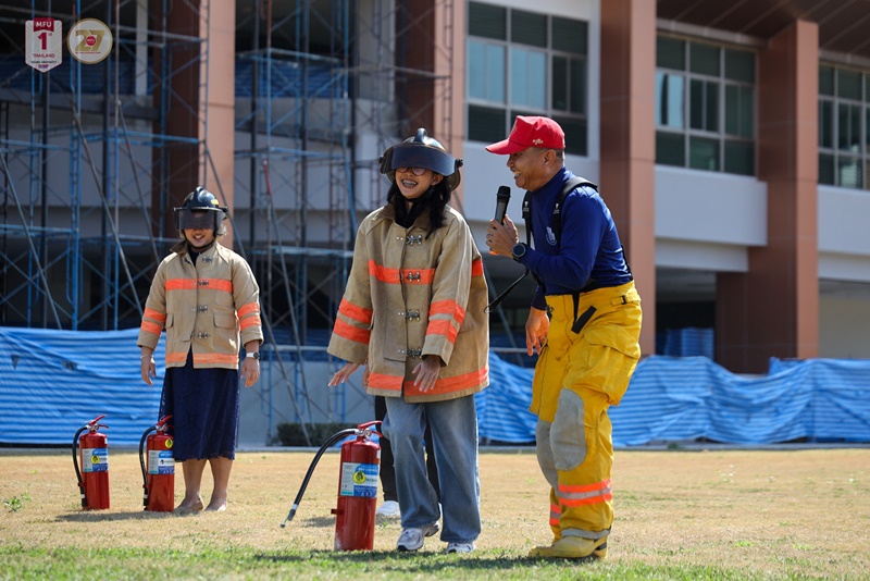 Key activities included expert-led sessions on building warning and alert systems, delivered by Mr. Panpong Kongtui, Head of the Energy Development and Conservation Division, Physical Plant Department. Further sessions addressing fire hazards, emergency response and earthquake safety in high-rise buildings were conducted by officers from the Disaster Prevention and Mitigation Center, Region 15, Chiang Rai.